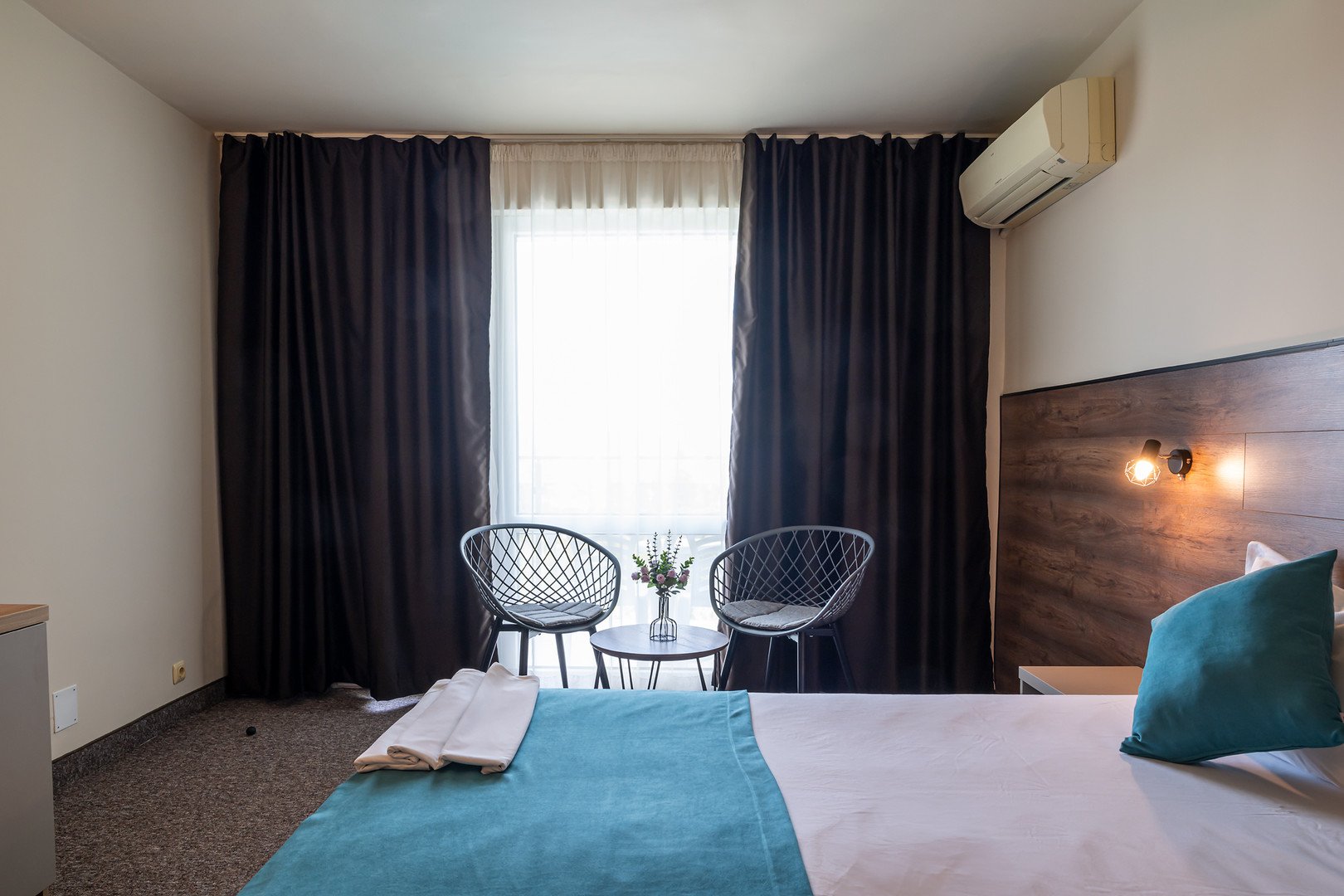 Dvoulůžkové pokoje s možností až 2 přistýlek pro děti mají vlastní příslušenství (koupelna/sprcha, WC), klimatizace, SAT/TV, WiFi zdarma, balkon; minibar (za poplatek).