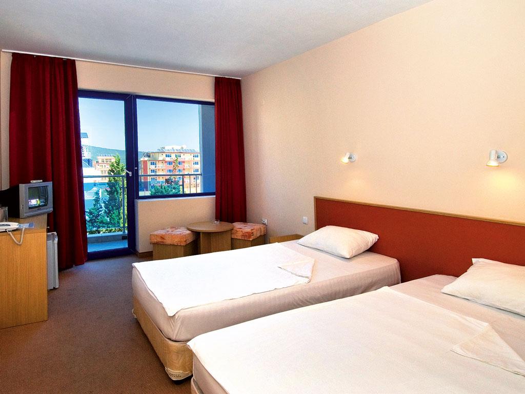 | Klimatizované (klimatizace zdarma) pokoje s balkonem a sociálním zařízením (sprchový kout, WC, fén) jsou vybaveny TV/SAT a chladničkou. Možnost jedné přistýlky (rozkládací křeslo). Maximální obsazenost tři dospělí. Dále jsou zde k dispozici i klimatizované hotelové apartmány A 2+2 (dvě oddělené místnosti) s balkonem, sociálním zařízením (sprchový kout, WC, fén), TV/SAT a chladničkou. Možnost dvou přistýlek (pevná lůžka). Maximální obsazenost tři dospělí a jedno dítě. |