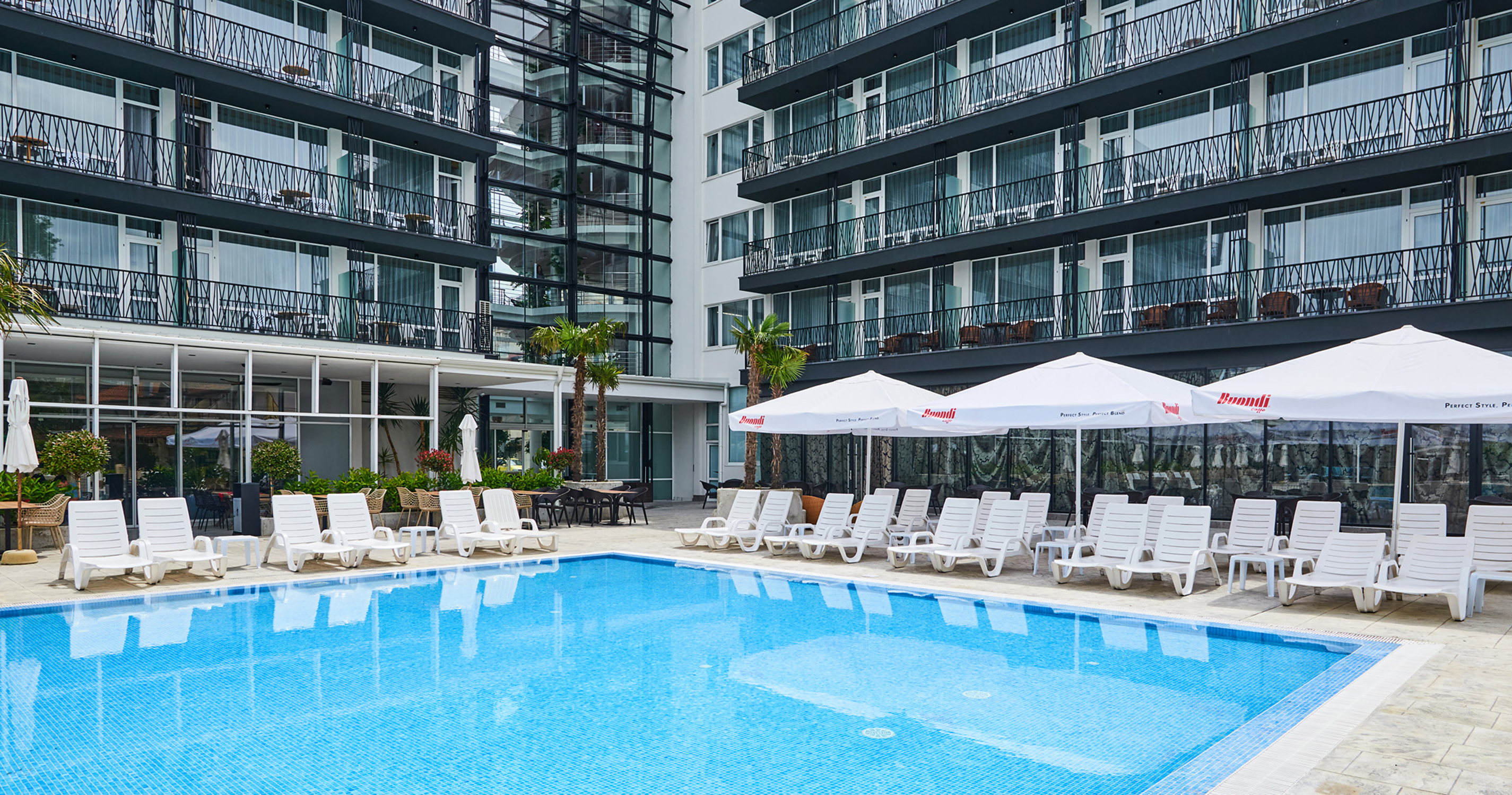 - Lehátka a slunečníky u bazénu zdarma