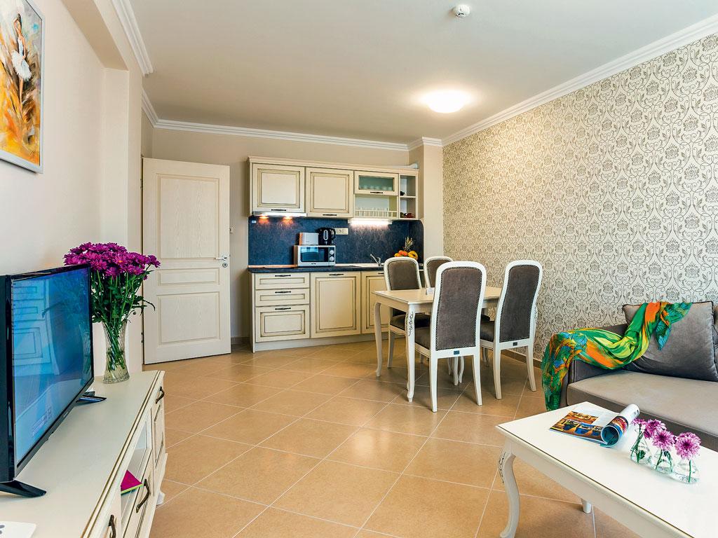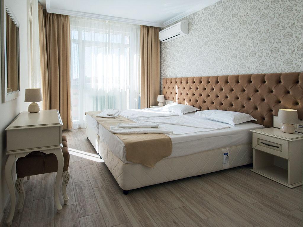 | Komfortní pokoje s balkonem a sociálním zařízením (sprcha, WC, fén) jsou klimatizovány (klimatizace zdarma) a vybaveny TV/SAT, Wi-Fi (zdarma), trezorem (zdarma), chladničkou, varnou konvicí, telefonem a kuchyňským koutem. Možnost dvou přistýlek (rozkládací gauč, lze využít jako přistýlku pro dvě osoby). Maximální obsazenost čtyři dospělí. Pokoje nabízíme za zvýhodněnou cenu. V hotelu jsou k dispozici i junior suity JS 2+2 (dvě místnosti - ložnice a denní místnost s rozkládacím gaučem a kuchyňským koutem, maximální obsazenost čtyři dospělí) a senior suity SS 4+2 (tři místnosti - dvě ložnice a denní místnost s rozkládacím gaučem a kuchyňským koutem, maximální obsazenost čtyři dospělí a dvě děti nebo pět dospělých, ložná plocha rozkládacího gauče v senior suitě SS 4+2 je 130x176 cm). Suity s balkonem a sociálním zařízením (sprcha, WC, fén) jsou klimatizovány (klimatizace zdarma) a vybaveny TV/SAT, Wi-Fi (zdarma), trezorem (zdarma) a telefonem. Kuchyňský kout je vybaven varnou deskou, mikrovlnnou troubou, varnou konvicí a chladničkou. |