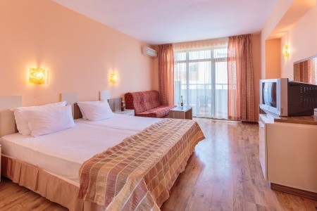 | Dvoulůžkové pokoje s možností přistýlky jsou vybaveny vlastním sociálním zařízením, TV, ledničkou, klimatizací a balkónem. Přistýlka je formou jednoho rozkládacího gauče, který je vhodný pro 2 menší děti nebo jedno větší dítě nebo jednoho dospělého. Hotel neubytuje na přistýlce dospělého a dítě. |