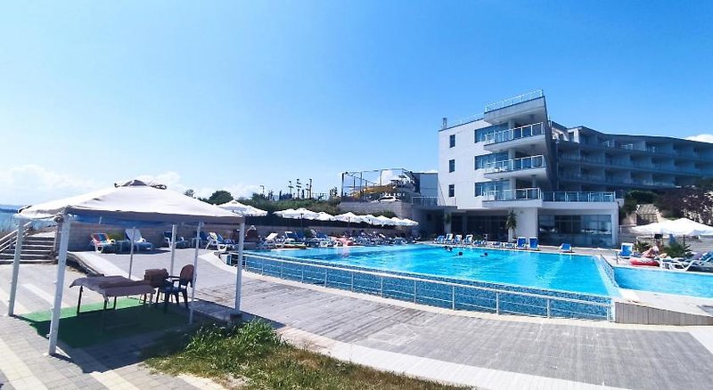 Moonlight Hotel stojí v letovisku Sveti Vlas, pouhých 10 metrů od vlastní pláže a 1 km od centra. Do letoviska Slunečné pobřeží jsou to 4 km a do starobylého města Nesebaru 10 minut jízdy. Letiště Burgas je vzdáleno 32 km od hotelu a letiště Varna 101 km.