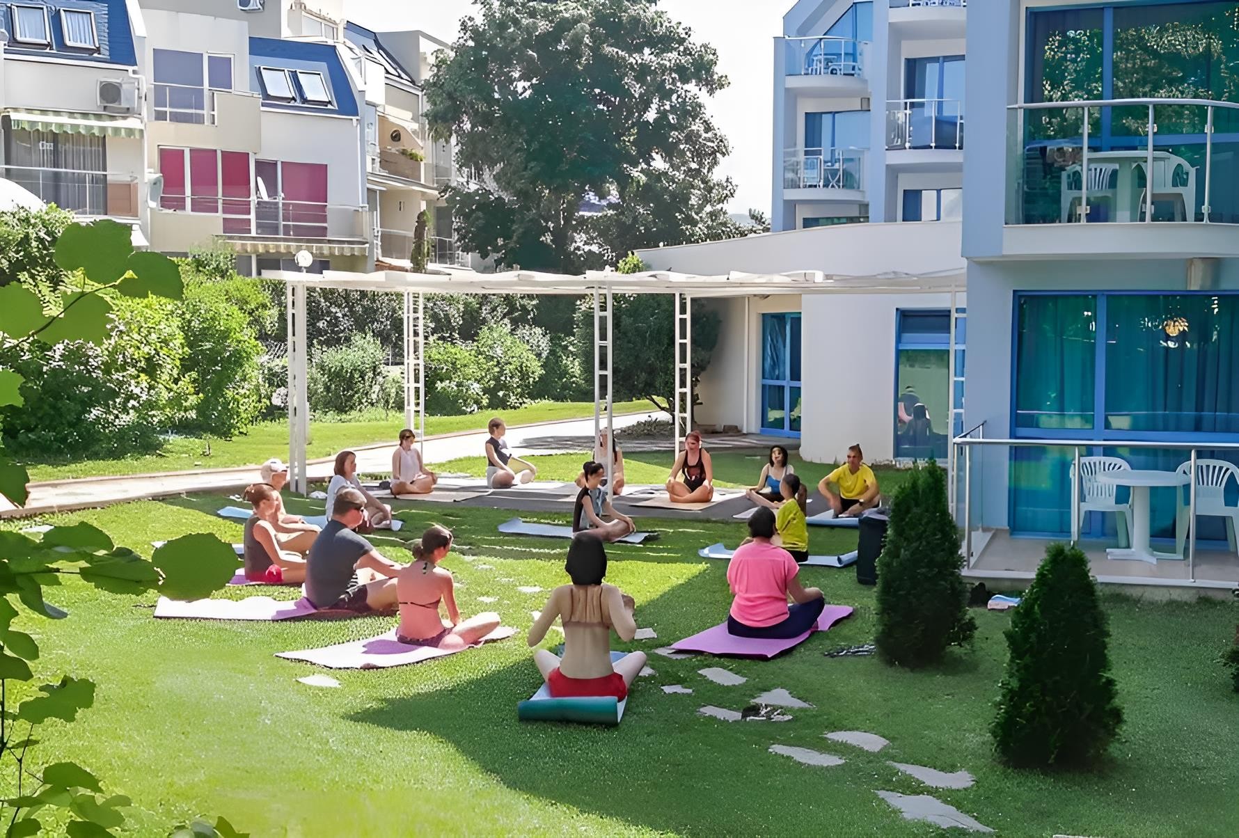 Hotelový komplex se nachází v klidné části střediska Sveti Vlas, nákupní možnosti, restaurace a bary v docházkové vzdálenosti. Rušnější letovisko Slunečné pobřeží je vzdálené 4 km, historický Nessebar 10 km (hotelový minibus za poplatek).