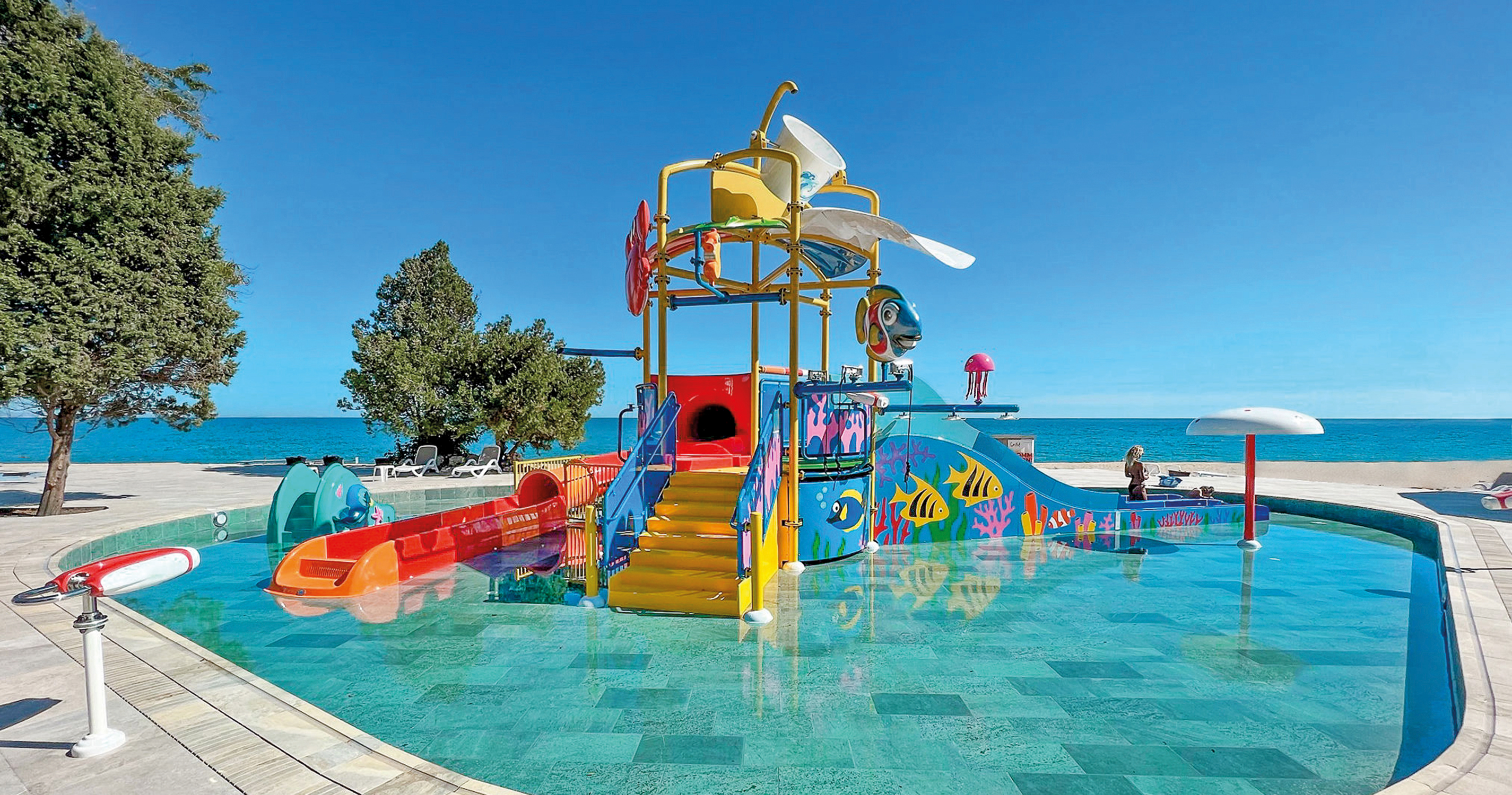 - 6 bazénů (střešní infinity bazén pouze pro hosty 16+), dětský bazén se skluzavkami