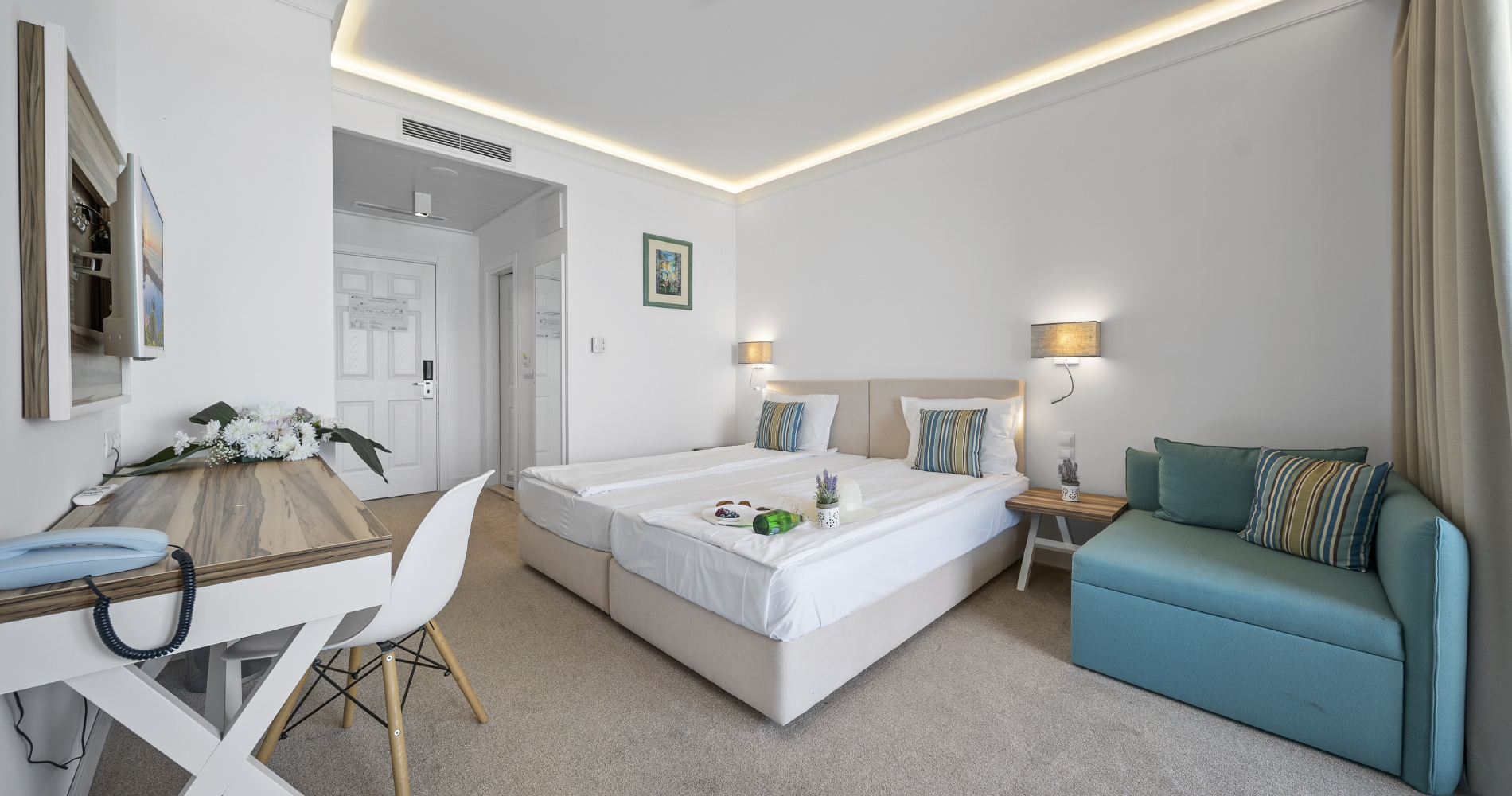 - Zdarma: denní i večerní animační programy (červen–srpen), fitness a vnitřní bazén v sesterském hotelu HVD Riviera Beach 5*