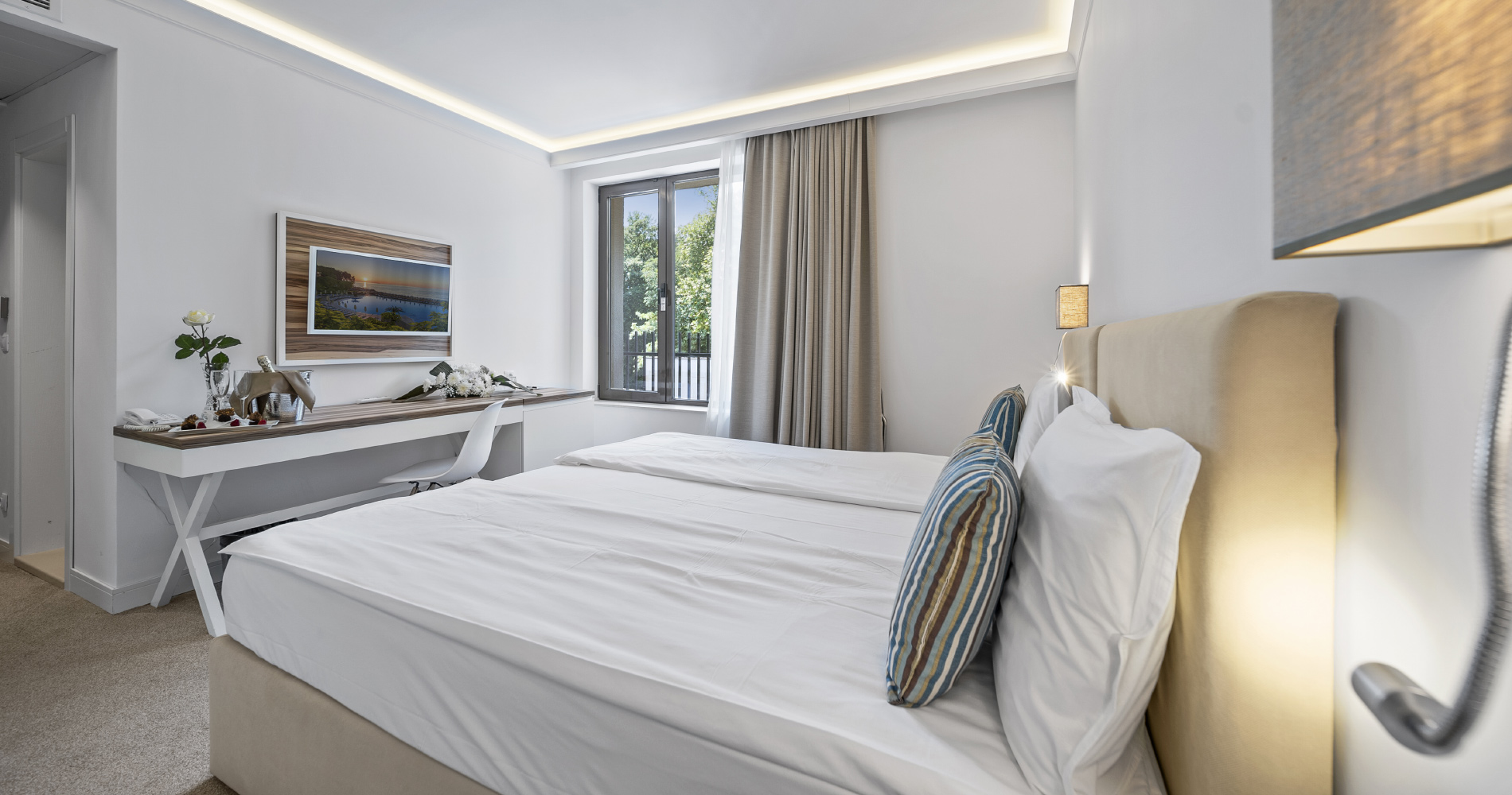 - Je stejně vybavený jako standardní pokoj, ale má navíc balkon nebo terasu