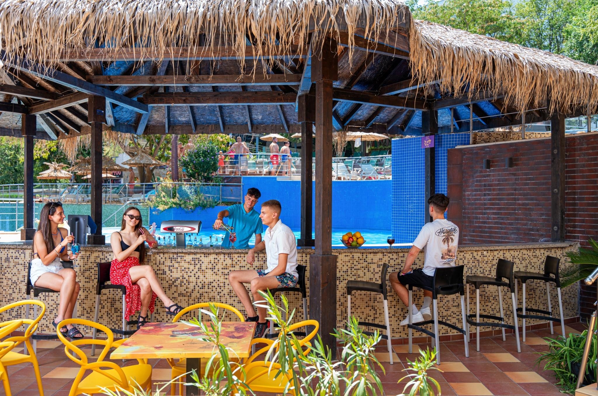 2 budovy, vstupní hala s recepcí, směnárna, výtahy, restaurace, bulharská tematická restaurace, lobby bar, bistro, konferenční sál, vnitřní bazén. V zahradě 2 bazény propojené skluzavkou, bar u bazénu, terasa s lehátky a slunečníky zdarma, osušky oproti kauci.