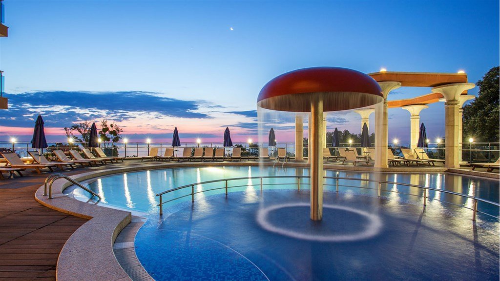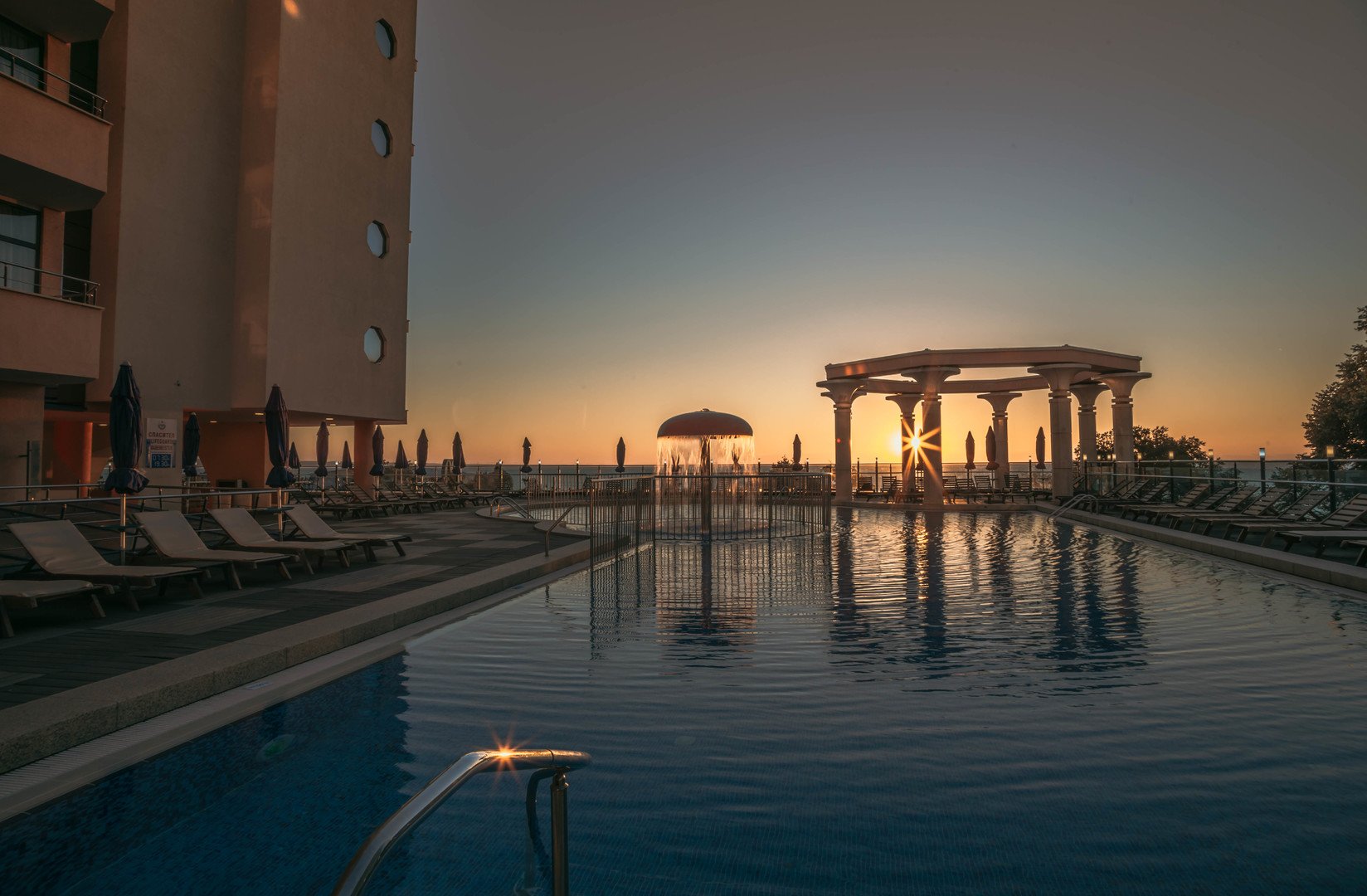 Vstupní hala, recepce, směnárna, výtah, 2 restaurace, 3 bary, malý bar na pláži, konferenční místnost, WiFi v lobby zdarma; trezor na recepci (cca 40 BGN/den), terasa na slunění, bazén s oddělenou částí pro děti, krytý bazén; slunečníky, lehátka a osušky zdarma.