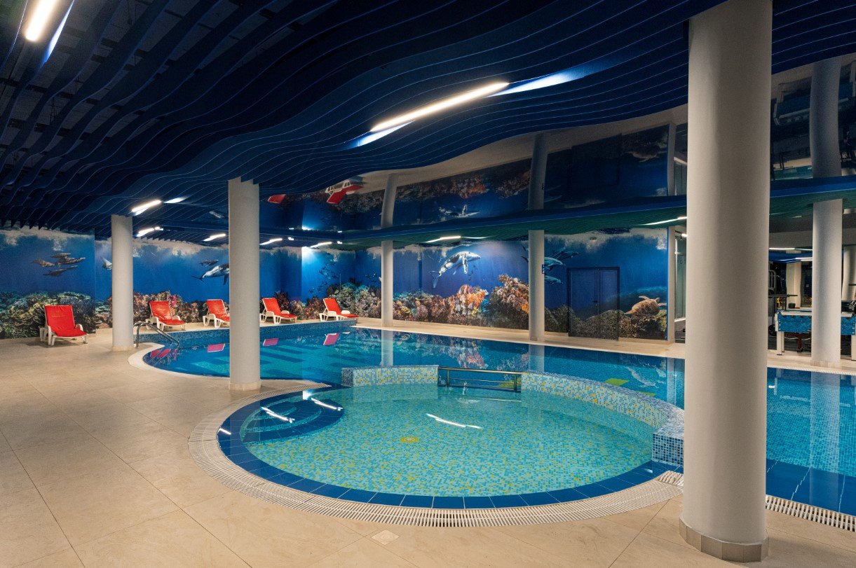 Bazény, vodní skluzavky, dětské hřiště, dětské brouzdaliště, stolní tenis, šipky, fitness, volejbal, dětské hřiště, animace pro děti i dospělé, mini-disco, kino, aerobic, posilovna; za poplatek: kulčník.