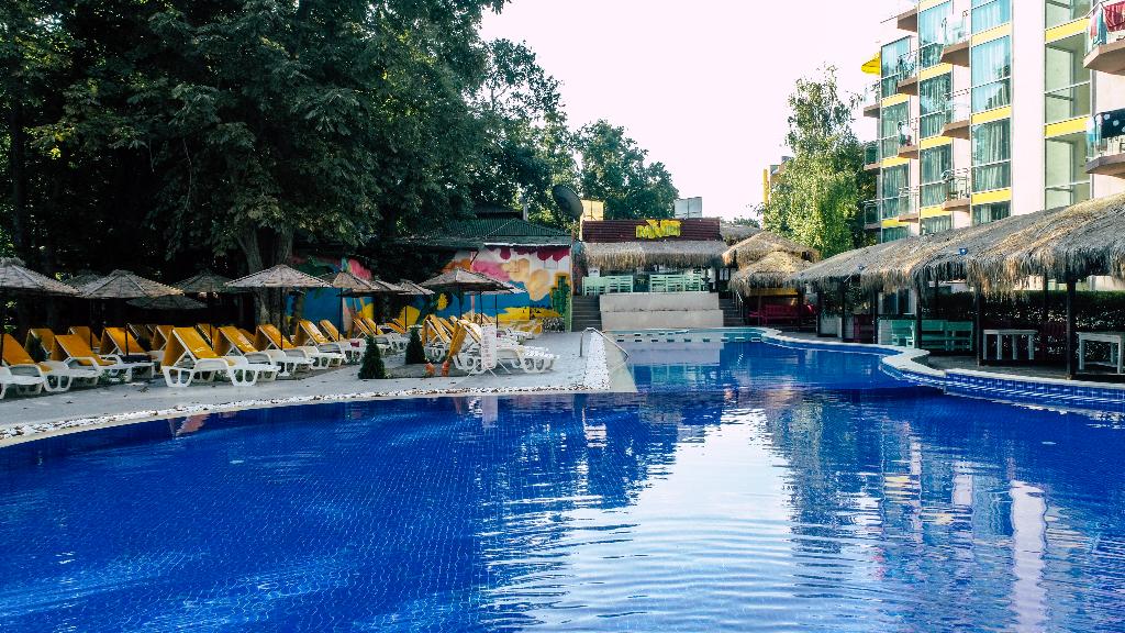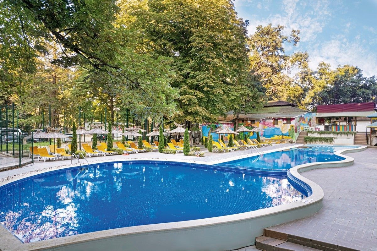 grilovanými pokrmy, 2 venkovní bazény a jeden krytý bazén. Klidnou