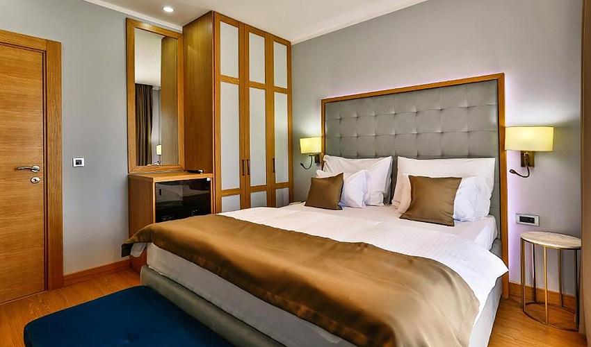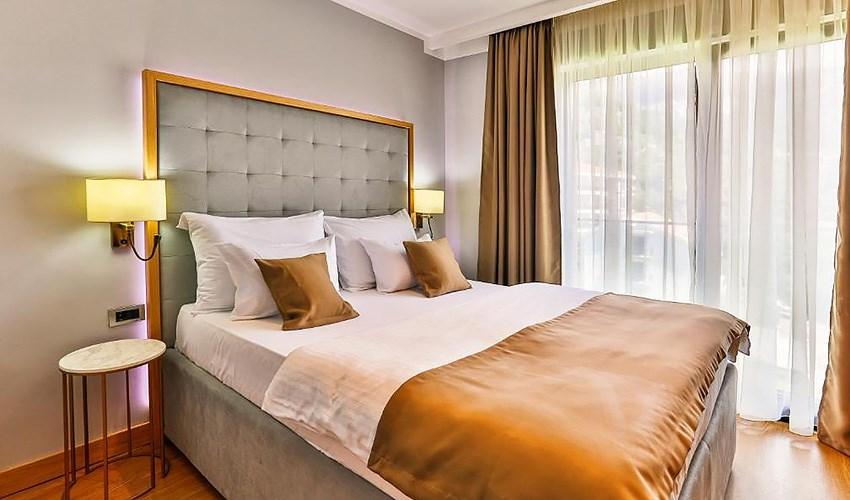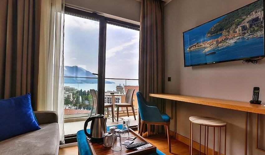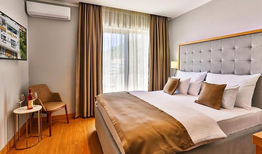 | Hotel Lusso Mare se nachází v klidném letovisku Bečići, nedaleko živého letoviska Budva. Jedná se o moderní hotel otevřený v roce 2019, který disponuje klimatizovanými pokoji vybavenými koupelnou, televizí, trezorem, minibarem a Wi-Fi připojením. Součástí hotelu je restaurace, která nabízí panoramatický výhled na moře i město. Historické a turisty oblíbené město Budva, do kterého lze dojít po promenádě, je vzdáleno 3 km a je taktéž dostupné autobusovou dopravou nebo místní taxi službu. Nákupní možnosti jsou od ubytování vzdáleny 170 m. Pláž lemovaná řadou restaurací a barů se nachází asi 300 m od ubytování. V okolí lze najít vodní zábavní park, který jistě ocení rodiny s dětmi. Klienti vyhledávající aktivnější dovolené mohou využít toho, že je lokalita vhodná pro pěší turistiku a vydat se objevovat okolí. Doporučujeme klientům všech věkových kategorií. |