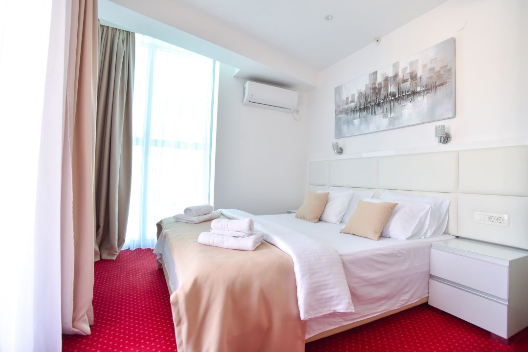 Hotelové pokoje jsou vybavené vlastním soc.zařízením (koupelna, WC), trezorem, telefonem, klimatizací, chladničkou, rychlovarnou konvicí a balkonem. K dispozici je také vybavený apartmán.