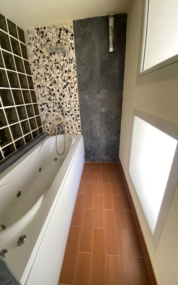 Koupelna s vanou a sprchou. Okno (bez terasy nebo balkonu).