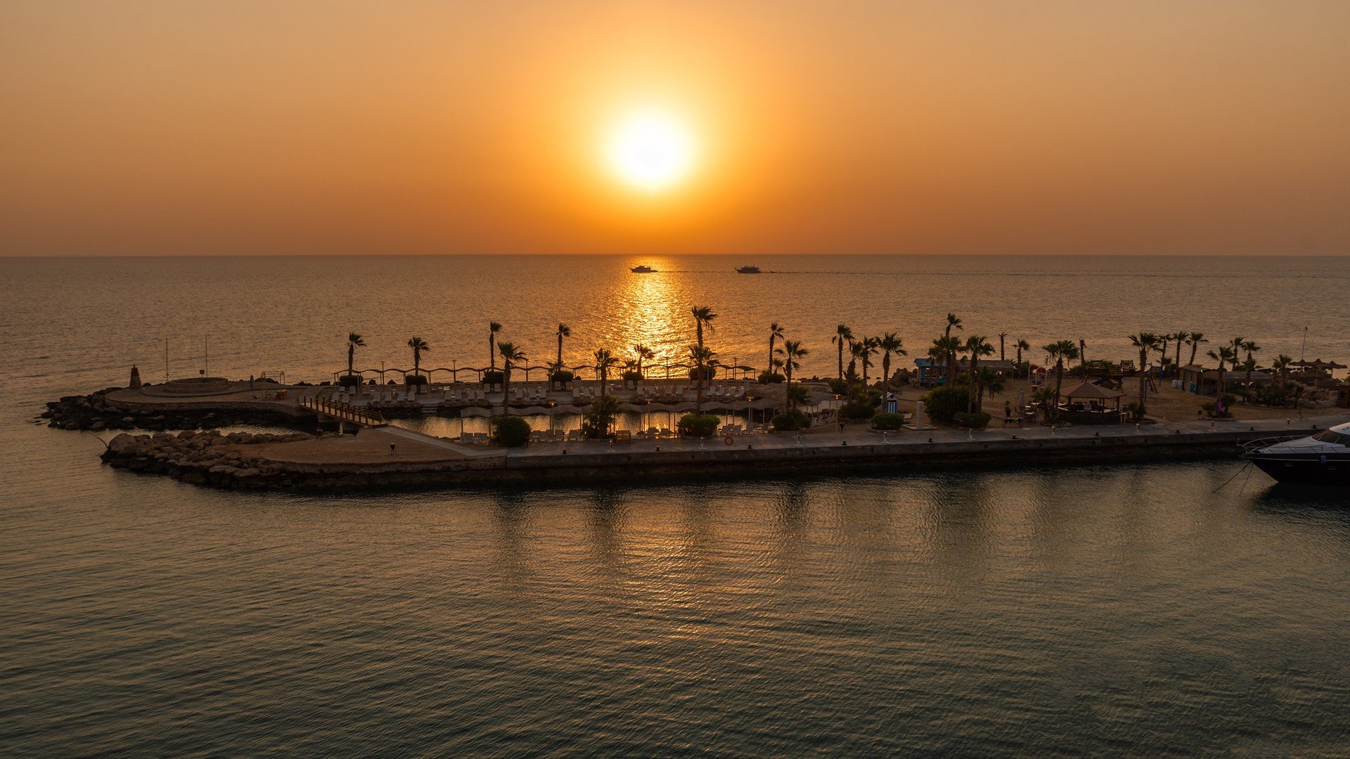 součástí komplexu je přístav a cca 1,6 km dlouhá soukromá písčito-kamenitá pláž