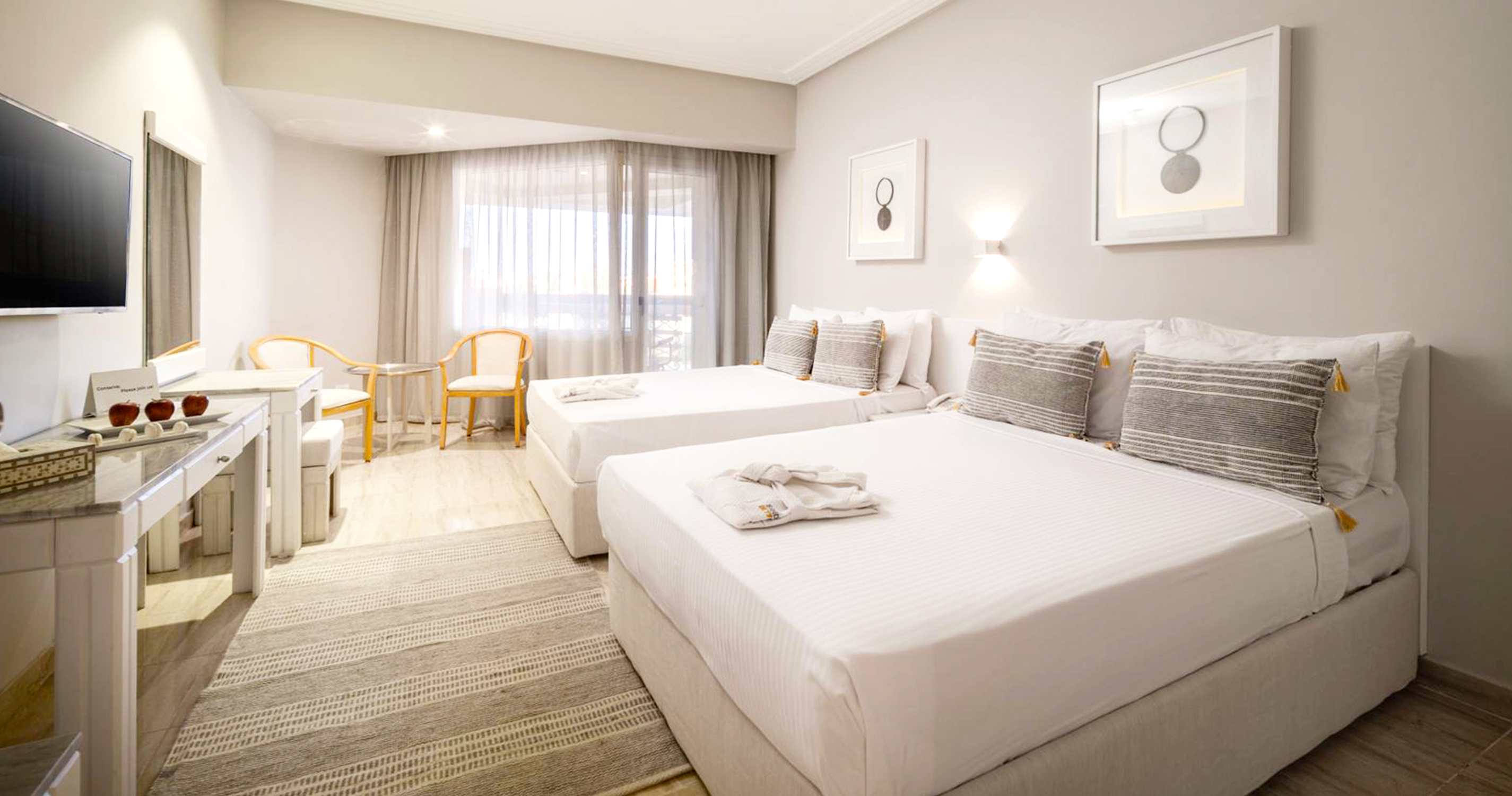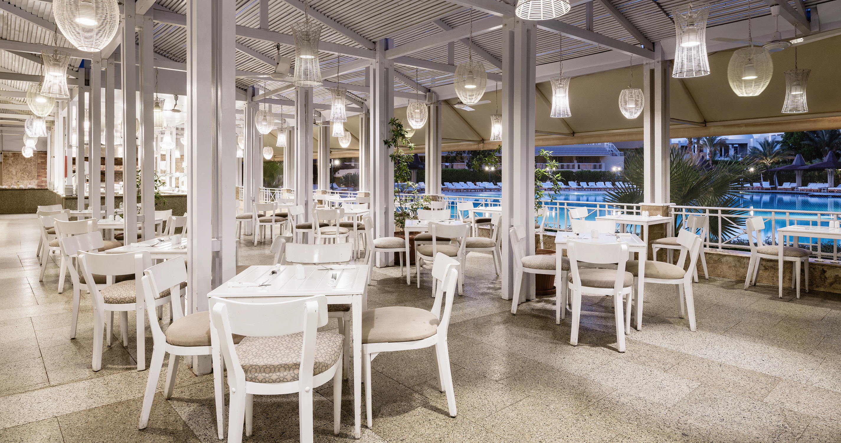 - All Inclusive: snídaně, oběd a večeře formou bufetu, snack během dne, neomezené množství vybraných místních alkoholických a nealkoholických nápojů ve vybraných barech a restauracích dle jejich otevírací doby (10.00–24.00), možnost využívat po předchozí rezervaci tematické à la carte restaurace (italská, arabská, asijská)