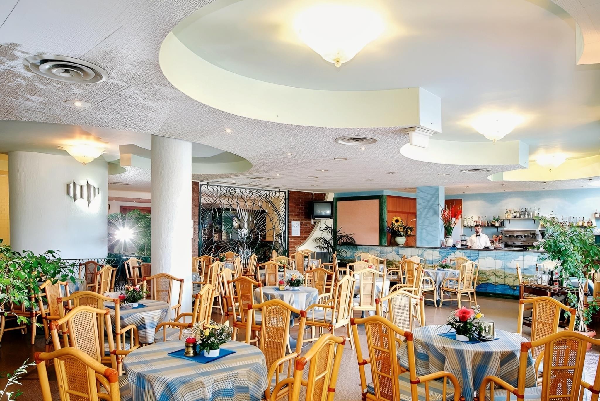 104 pokojů, hlavní budova a dependance Athena, vstupní hala s recepcí, výtah, restaurace, 2 bary, vnitřní bazén (za poplatek).