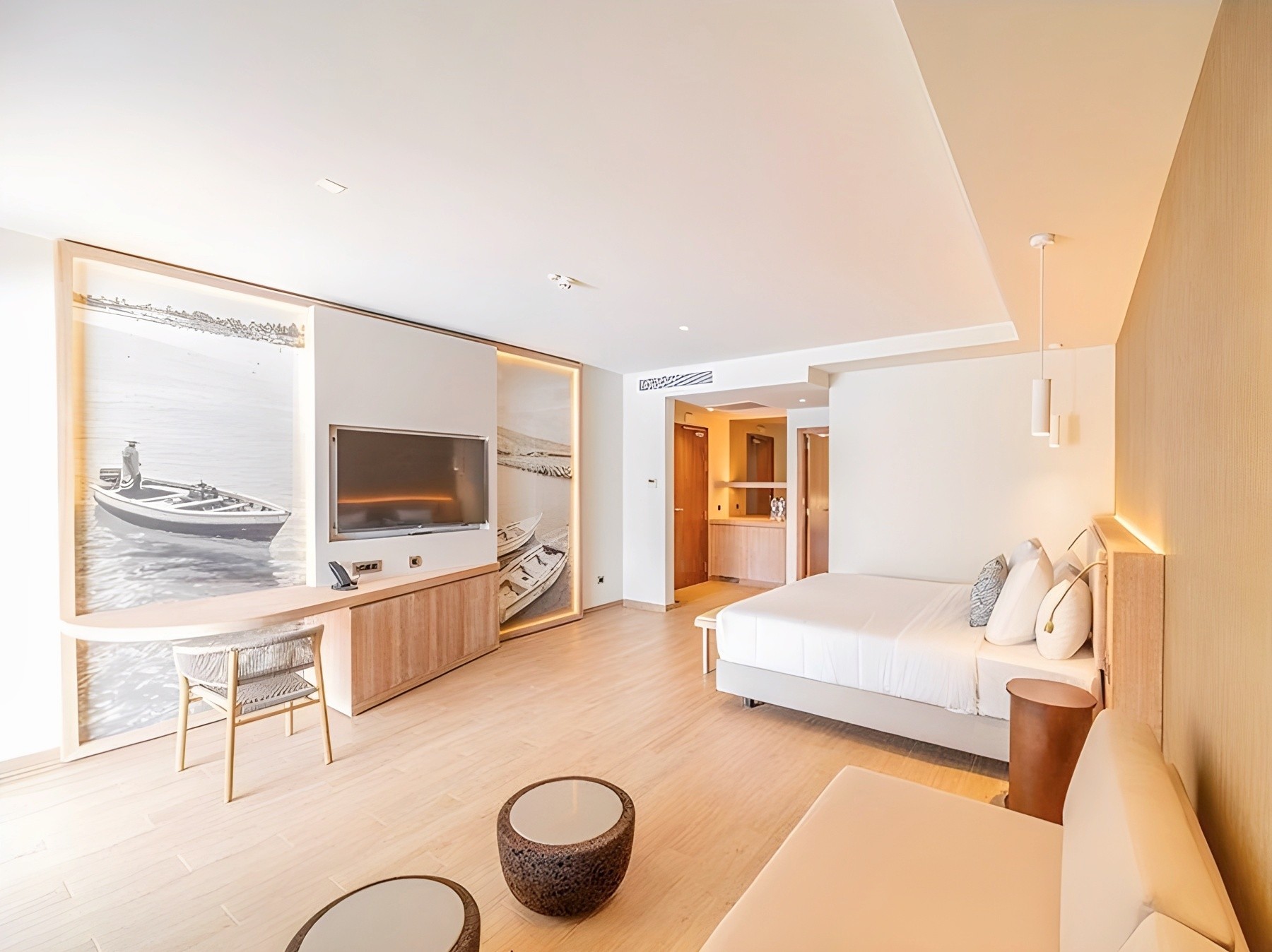 - Deluxe pokoj s výhledem na moře: Stejné vybavení jako standardní Deluxe pokoj.