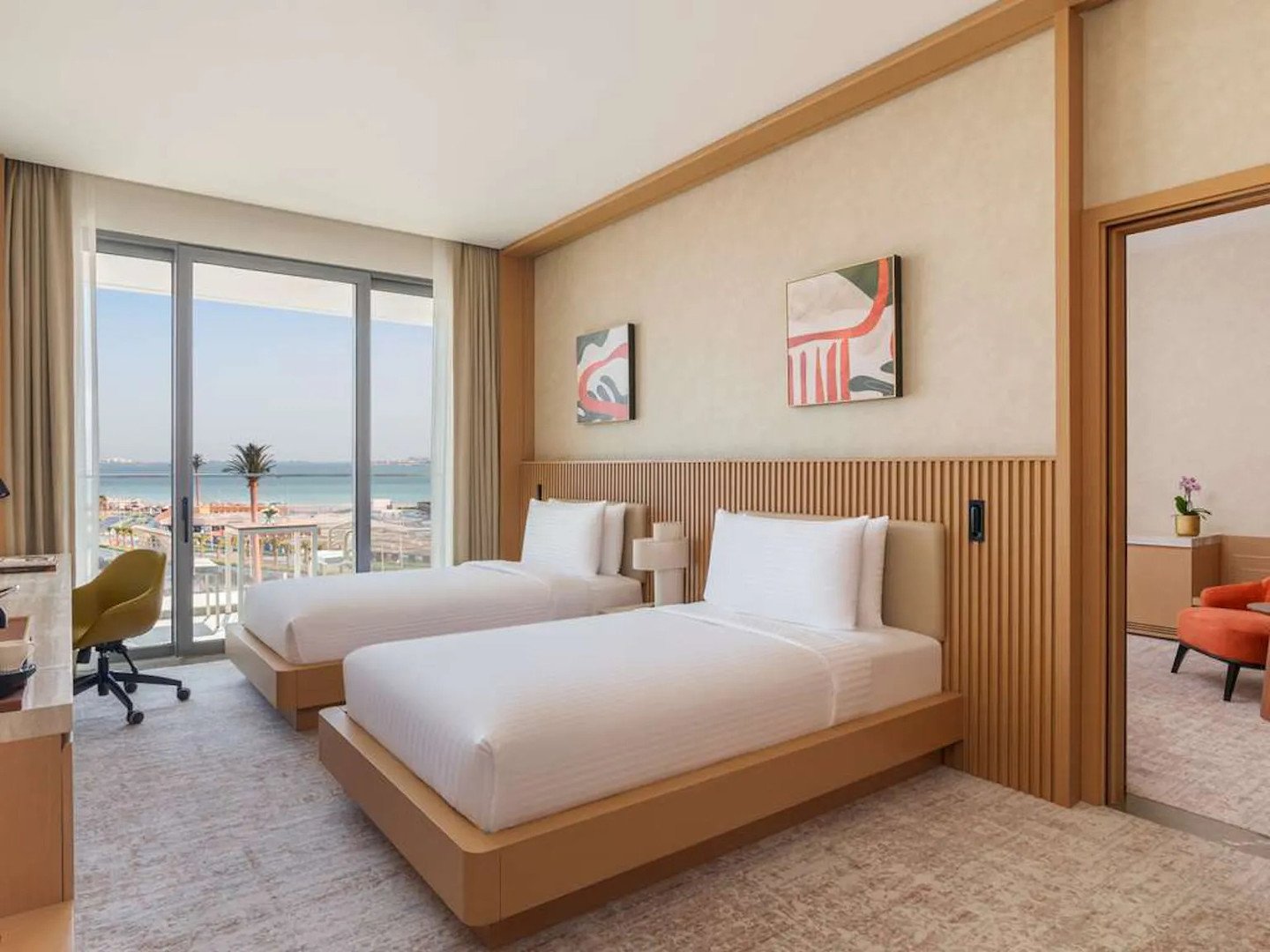 Pokoje s 2 oddělenými ložnicemi o velikosti 72m² mají dohromady 1 dvoulůžkovou postel a 2 jednolůžkové postele. K dispozici je balkon s výhledem na moře nebo aquapark. Zbytek výbavy je stejný jako u pokojů Deluxe.