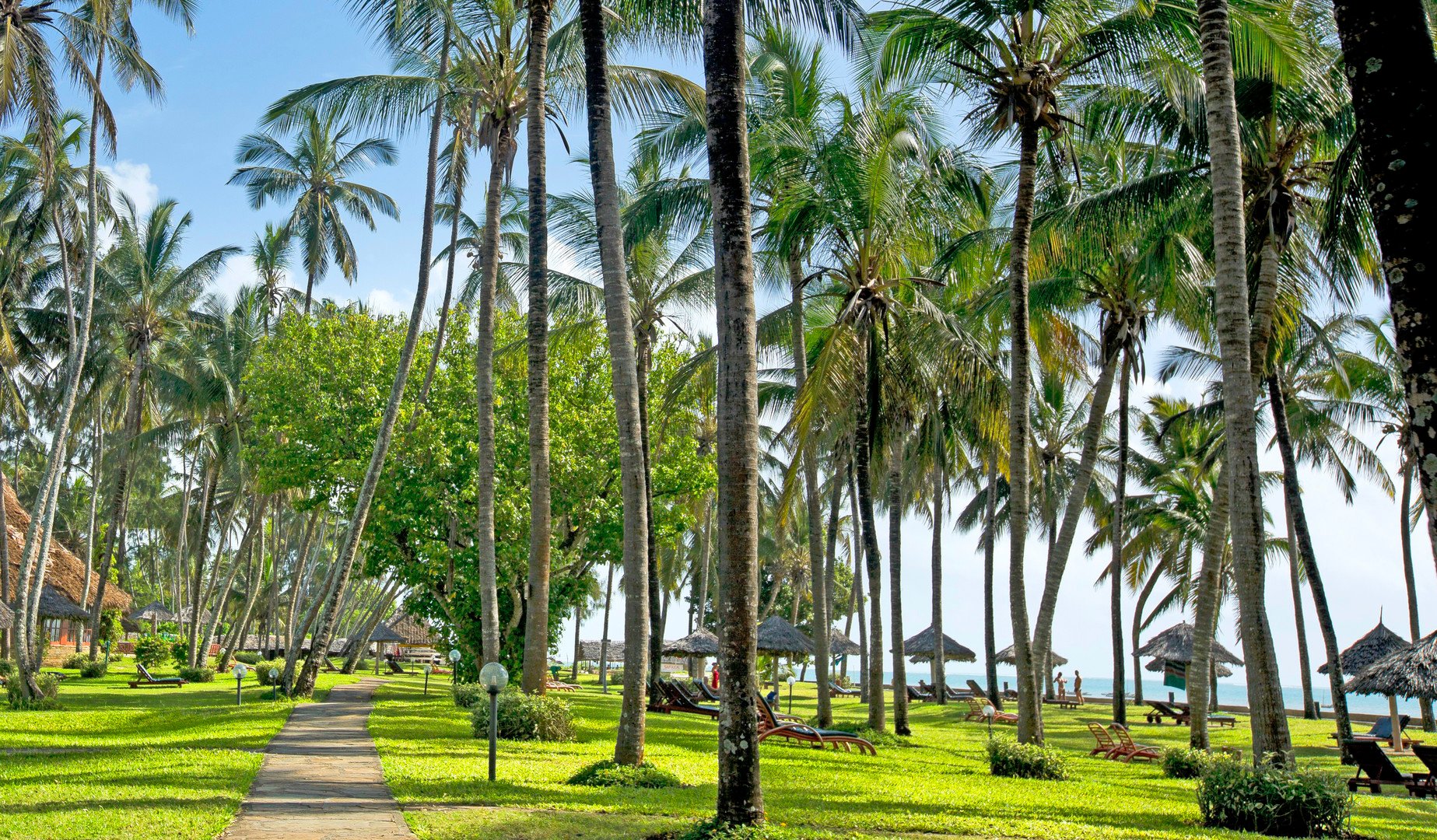 slunečníky, lehátka a osušky zdarma na hotelovém trávníku v těsné blízkosti pláže - v případě přílivu pláž pod vodou