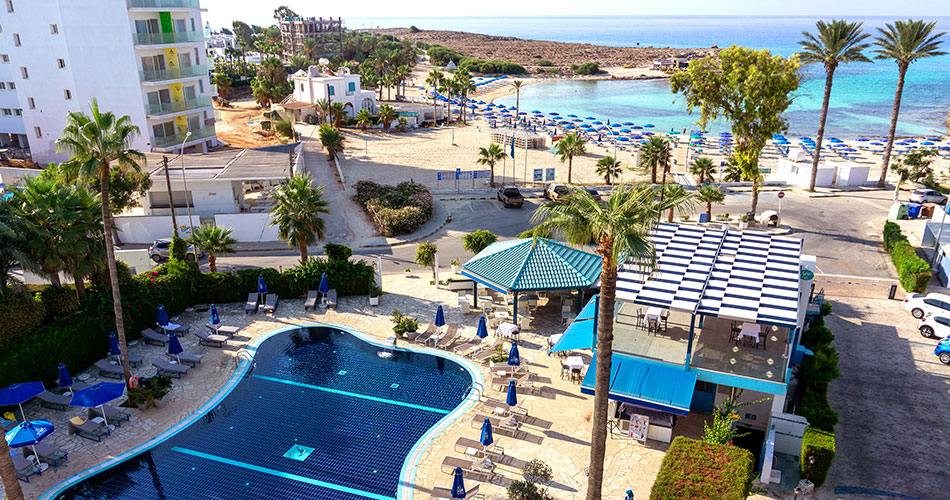 Umístěn v hotelové a zábavní čtvrti cca 2 km západně od centra Ayia Napa. Nejbližší restaurace a obchody cca 500 m od hotelu, zastávka veřejné dopravy a taxi cca 750 m od hotelu. Mezinárodní letiště v Larnace je vzdáleno cca 55 km.