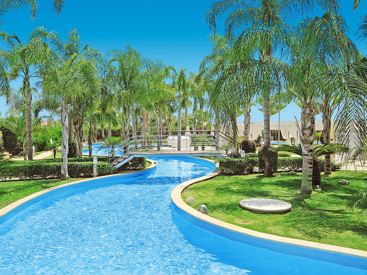 Hlavní budova a několik dalších bungalovů rozmístěných v zahradě s celkem 314 pokoji. V hlavní budově vstupní hala s recepcí, směnárna, lobby, místnost na úschovu zavazadel, výtahy, 4 bary, bar pro teenagery, hlavní restaurace Royal Olympic, tematicky zaměřené restaurace (americká, řecká a japonská i mezinárodní, některé určené pouze pro dospělé osoby) s nutností rezervace předem, konferenční místnost, terasa s TV, minimarket, herna pro teenagery, miniklub. Samostatná část Fisherman´s Village určená pouze pro ubytování dospělých osob v oddělené a klidné části hotelu. V rozlehlé tropické zahradě 5 různých sladkovodních bazénů (jeden relaxační bazén určený výhradně pro dospělé osoby) a bazén určený pro klienty ubytované v části Fisherman´s Village, některé z nich s vodopády, vodní vířivky, oddělený dětský sladkovodní bazén se skluzavkou v podobě pirátské lodi, líná řeka (pro děti do 140 cm nutný doprovod dospělé osoby), bar s terasou, lehátka, slunečníky a osušky (zdarma), sprcha u bazénu, dětské hřiště v zahradě.
