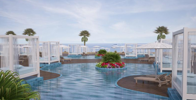 Postavený v roce 2014, 375 pokojů, 1 budova, 7 podlaží, 7 výtahů, 4 restaurace (1 bufetová, 3 à la carte), 4 bary včetně baru u bazénu, směnárna, obchod se suvenýry, parkoviště, kadeřnictví, terasa s panoramatickým výhledem na moře a bazény, zahrada, společenská místnost. Na vyžádání za poplatek pokojový servis a prádelna.