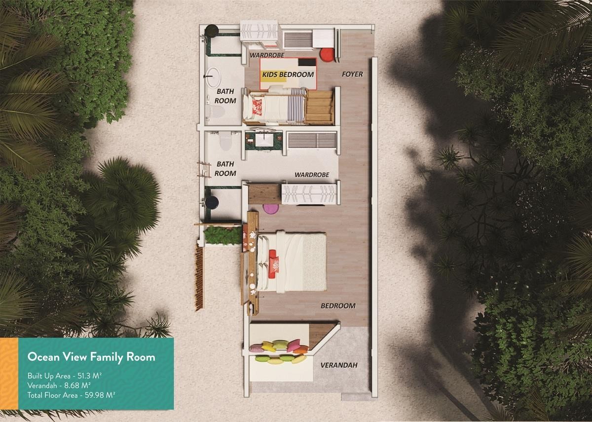 Ocean View Family Two Bedrooms: 50m2, ložnice, dětský pokoj s palandou, 2 koupelny