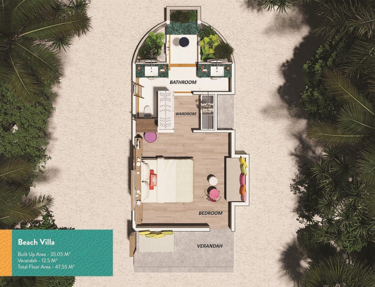 Beach Villa: 50m2, samostatně stojící vila, vila na pláži, polootevřená koupelna
