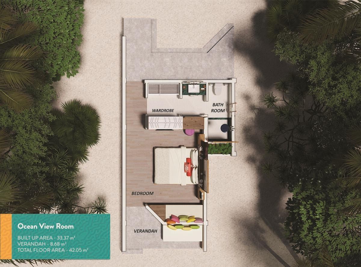 Ocean View: 30m2, pokoj v dvoupodlažní budově, výhled na oceán, sprcha, toaleta, župan, fén, klimatizace, ventilátor, minibar (zdarma), trezor, TV, Wi-Fi, set na přípravu kávy/čaje, balkon nebo terasa