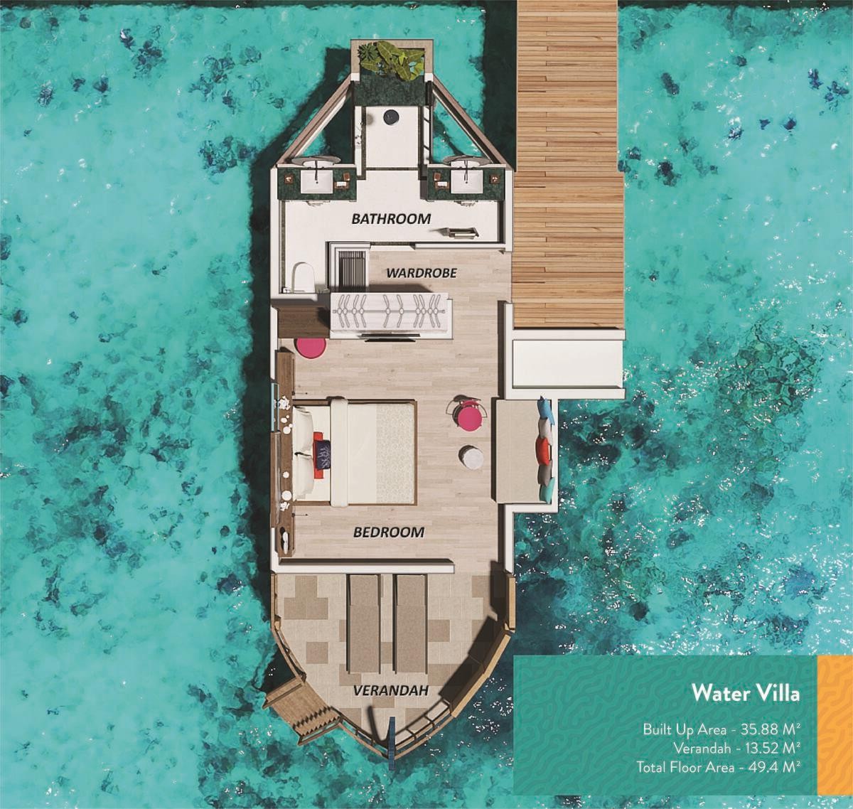 Water Villa: 50m2, samostatně stojící vila, vila na vodě, přímý vstup do oceánu