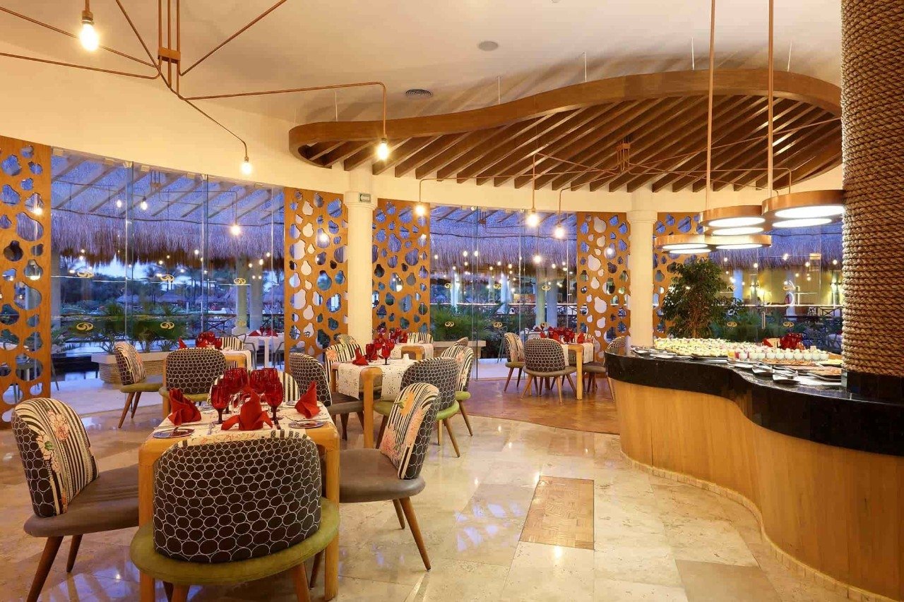 Snídaně, obědy a večeře formou bufetových stolů. Večeře jsou také možné v a-la-carte restauracích (po předchozí rezervaci a dle dostupnosti). A-la-carte restaurace vyžadují vhodné oblečení. Občerstvení na barech po celý den. Mezinárodní alkoholické a nealkoholické nápoje do 02.00 h. Minibar je denně doplňován.
