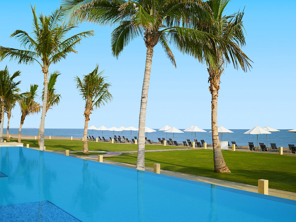 resort se nachází přímo u dlouhé písčité pláže v regionu Jižní Batinah u Ománského zálivu