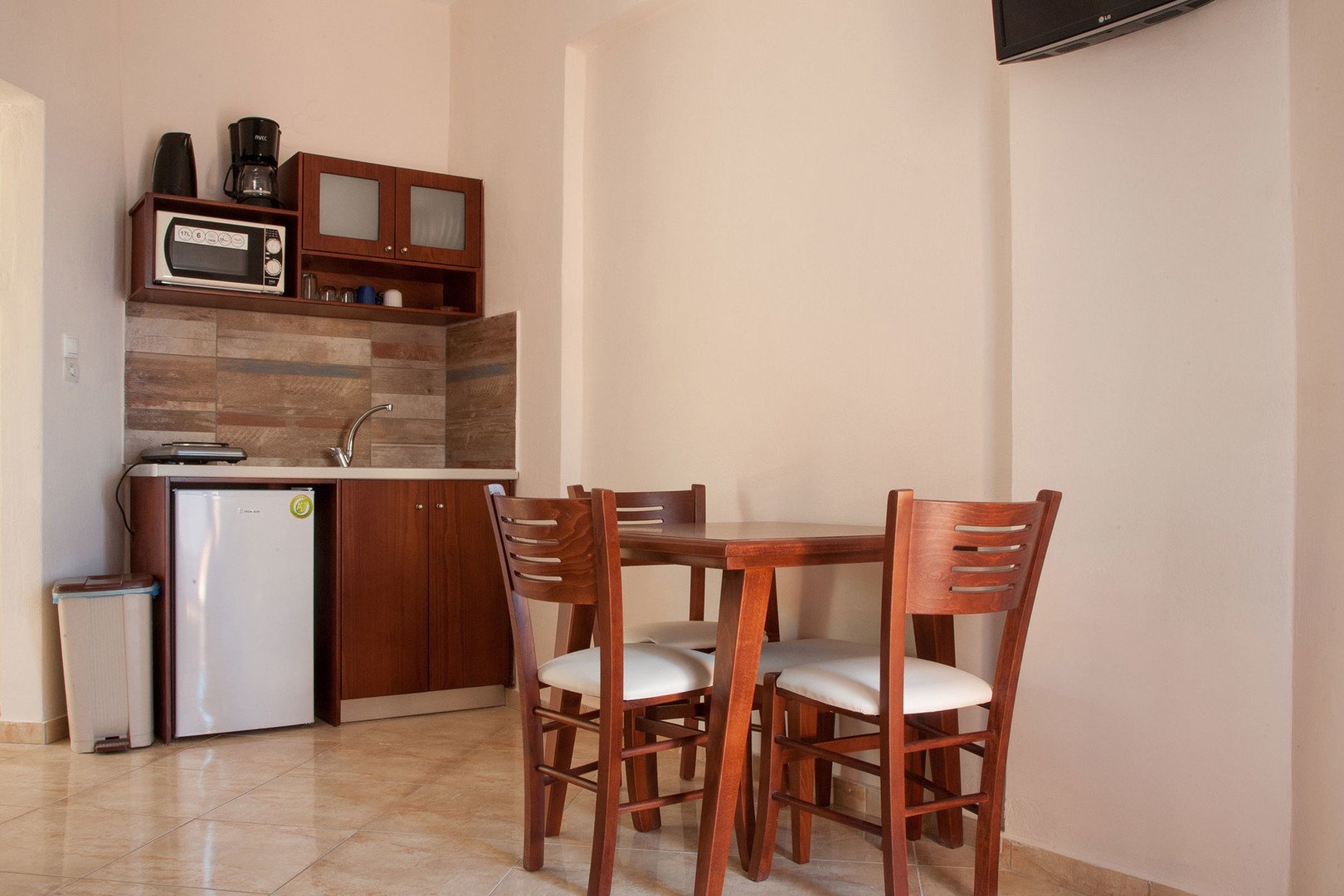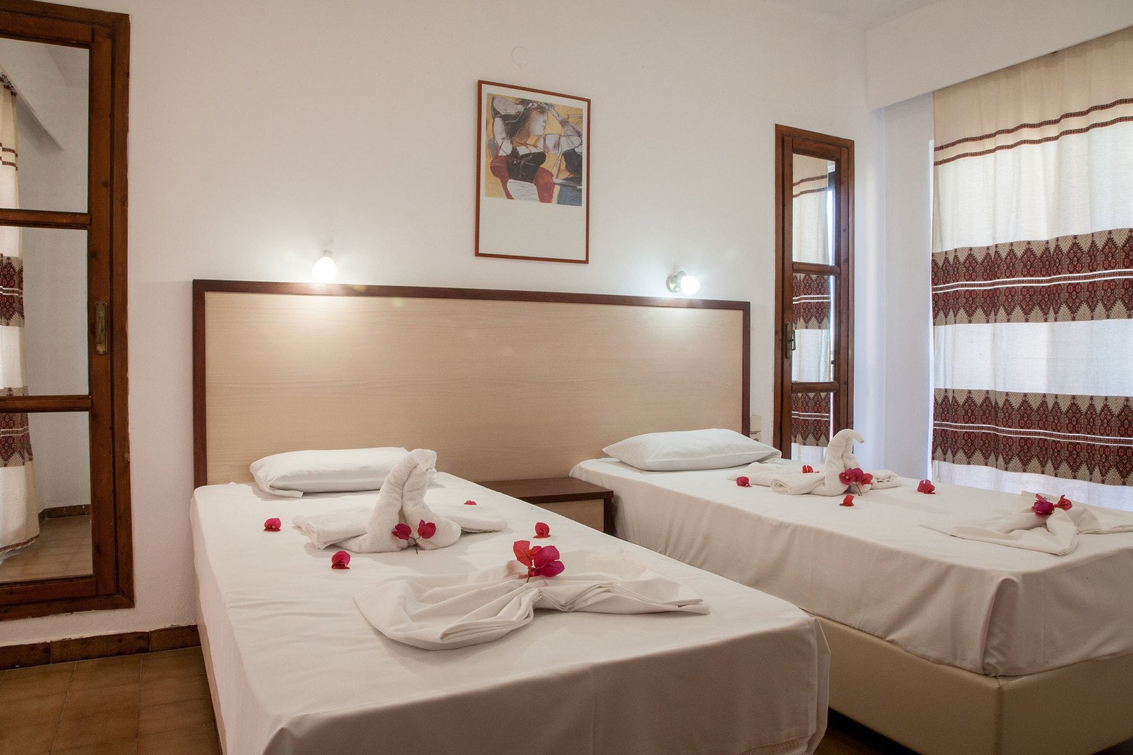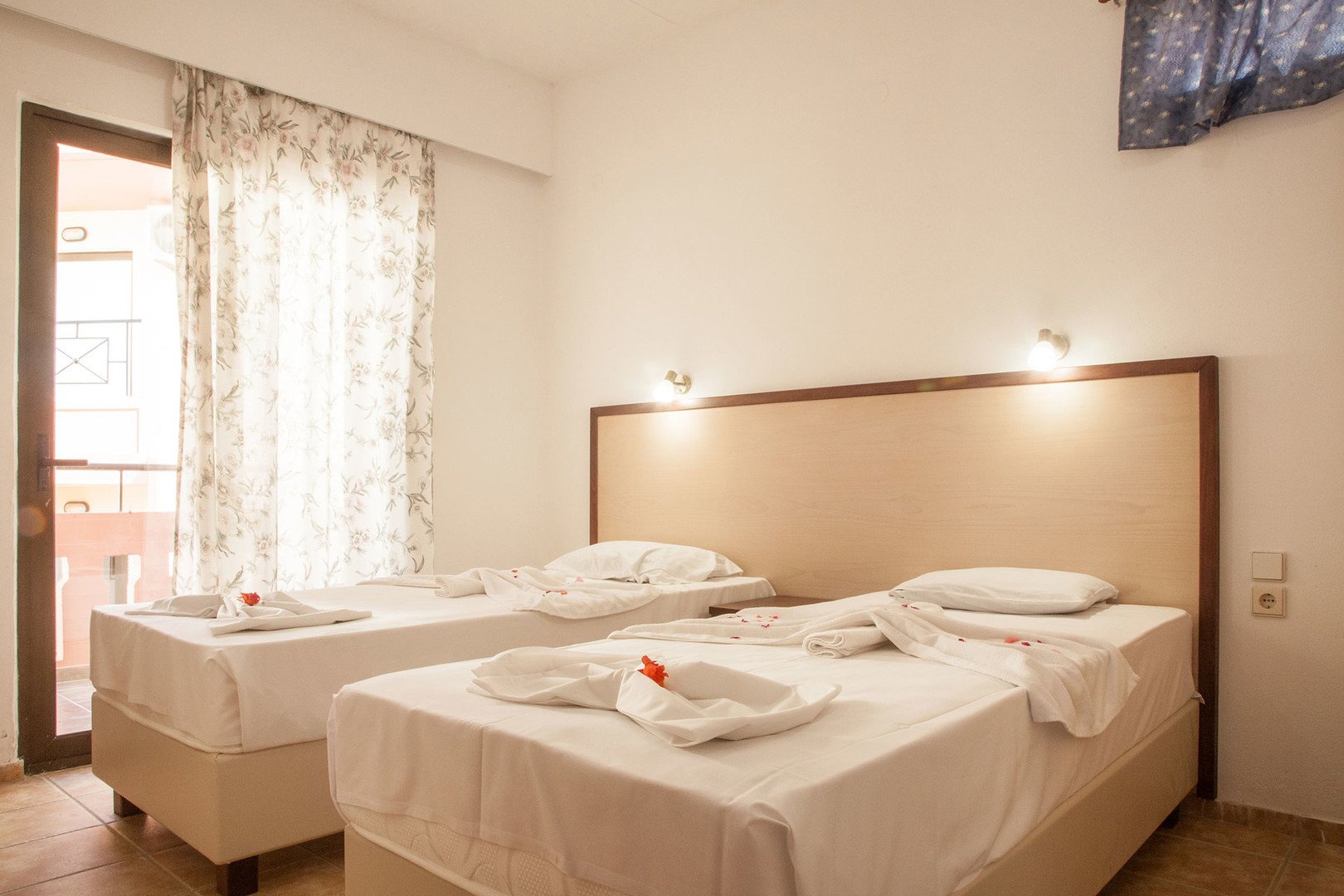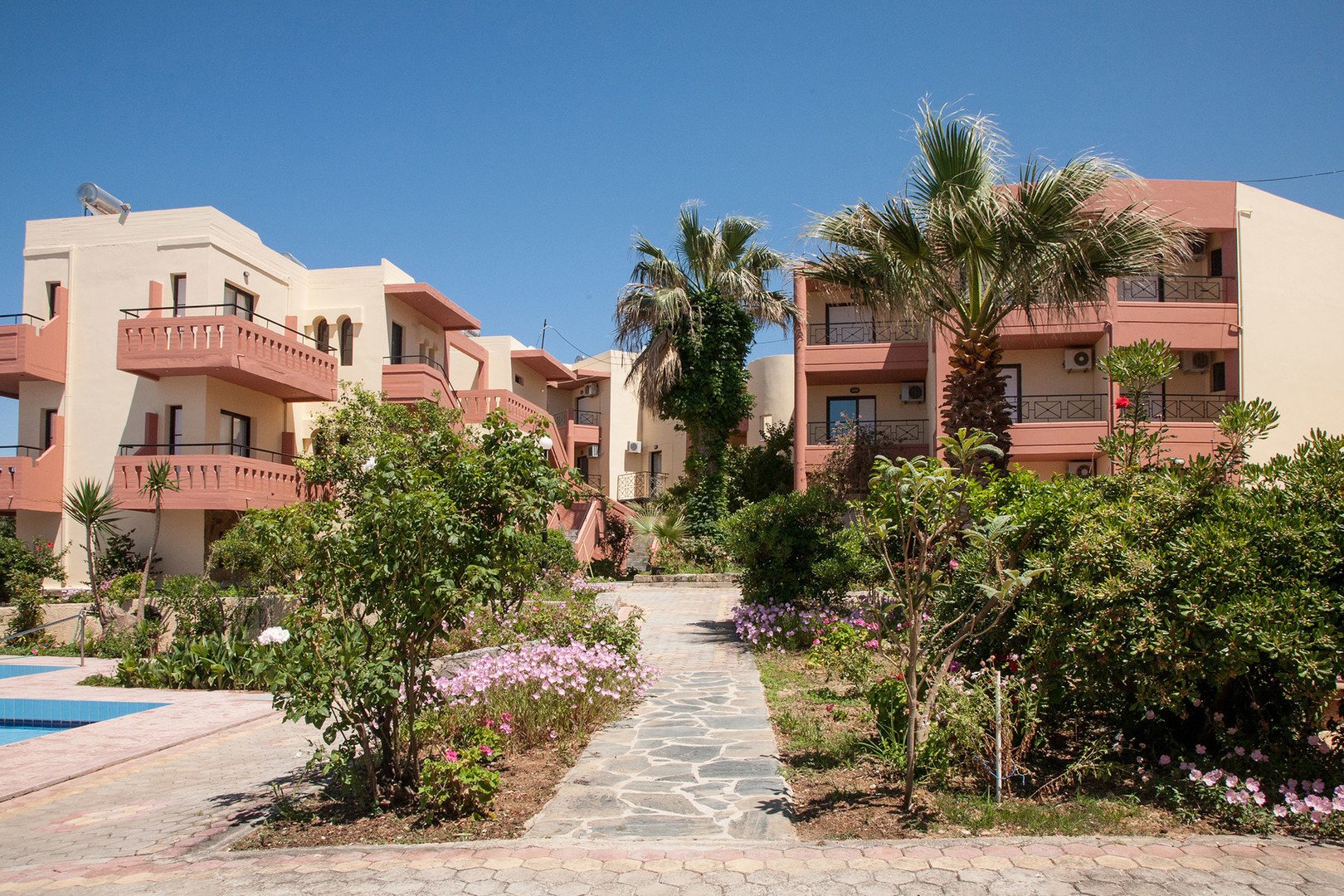 Dvoulůžková studia a jednoložnicové apartmány mají plně vybavený kuchyňský kout, vlastní koupelnu se sprchou, balkon nebo terasu a TV (na vyžádání). Za příplatek je k dipozici trezor nebo klimatizace. V nabídce josu také apartmány s výhledem na moře.