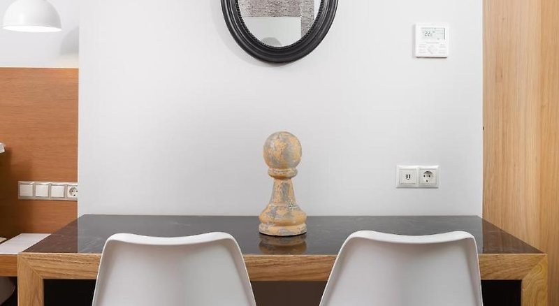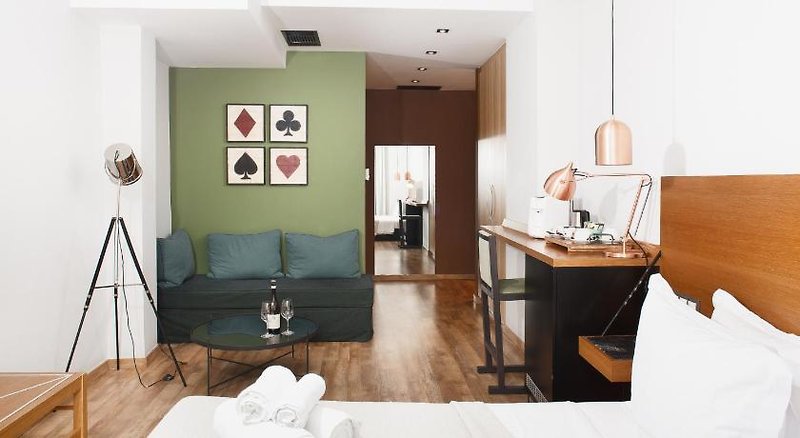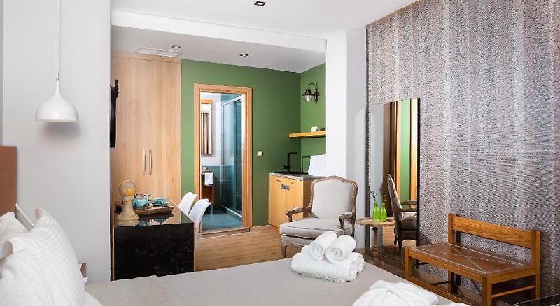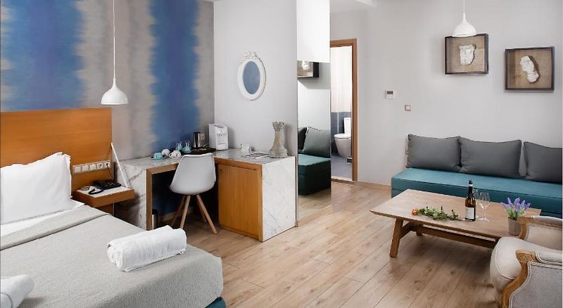 Šestipatrová budova poskytuje ubytování v celkem 33 elegatních pokojích s moderním řeckým nádechem. Svým hostům nabízí recepci s lobby, výtahy, restauraci, bar, WiFi (zdarma).