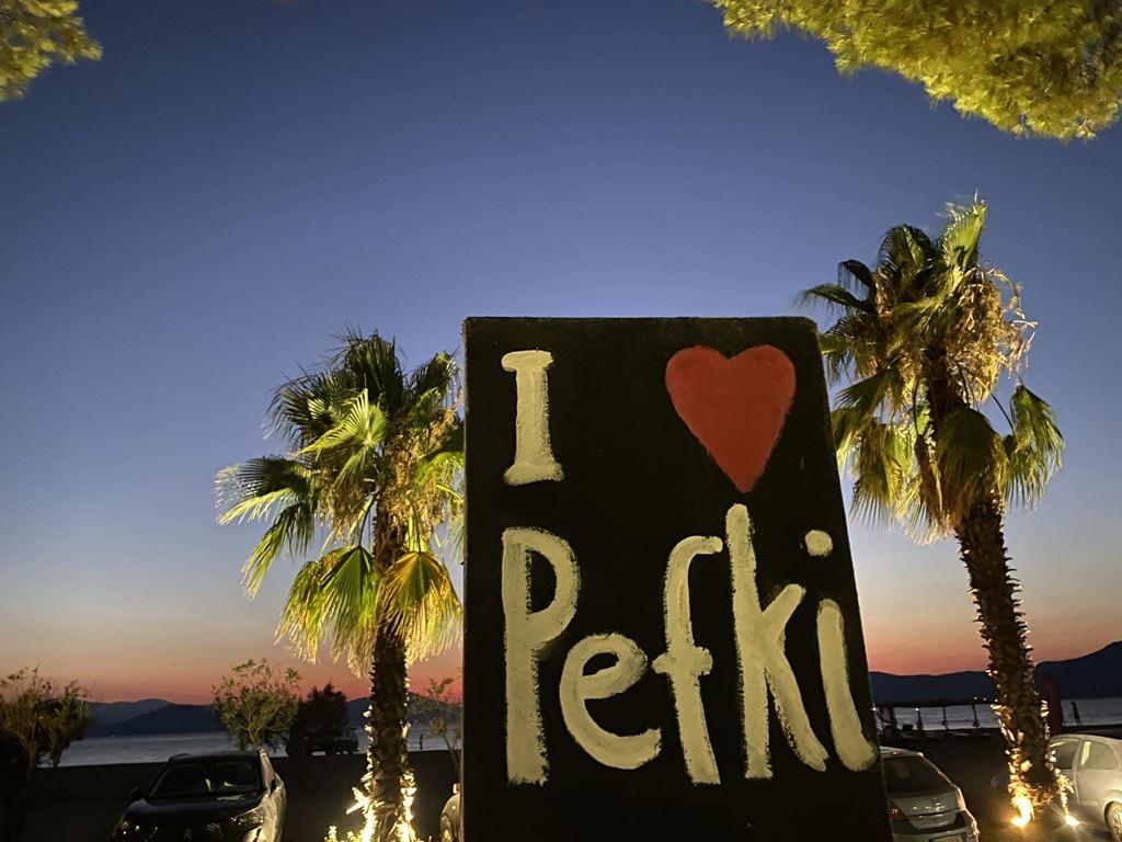 odpočinek než městečko Pefki. To bylo pojmenováno právě po všudy