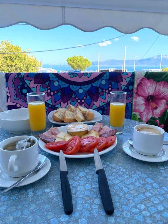 Vlastní vaření z vlastních zásob nebo stravování v místních tavernách, které jsou v blízkosti Villy Fei. Možnost dokoupení snídaní, večeří nebo polopenze. Strava probíhá v místní vyhlášené restauraci s výhledem na moře, cca 100 m od ubytování. Snídaně je servírovaná. K dispozici máslo, marmeláda, pečivo, káva/čaj, mléko, džus + další chod, který se bude měnit (obložený talíř, vejce nebo párky nebo tousty nebo omeleta). Poslední den si mohou klienti vyzvednout balíček na cestu (croassaint nebo sendvič, džus + kousek ovoce). Snídaně probíhají od 9:00 do 11:00 hodin. Večeře je servírovaná, na výběr z cca 15 jídle včetně řeckých specialit (např. pasticio, musaka, kokinisto, souvlaki, kalamary, sardele, bakaliaros, boloňské špageti, zapečené papriky s lilkem, kuřecí nebo vepřové maso + salát dle výběru včetně tzatziki bude servírován pro počet osob v jedné míse doprostřed stolu) + 3. chod (buď dezert nebo ovoce). Večeře probíhají od 17:00 do 21:00 hodin. |