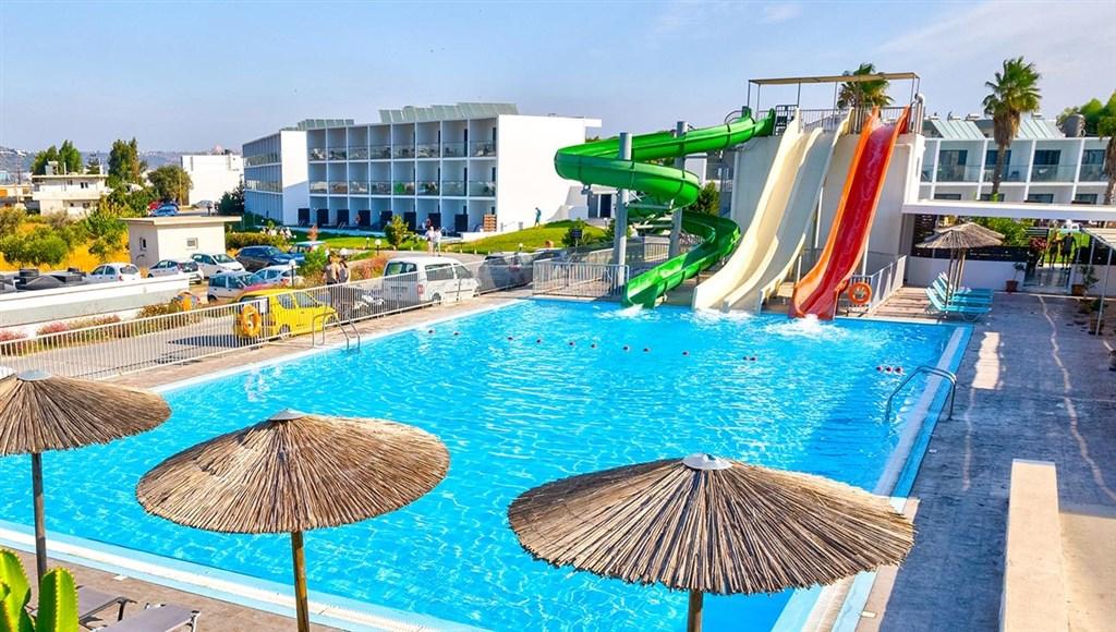 | Stylový hotel v moderním designu Evita Resort 4* (Rhodos, Řecko) byl otevřen v roce 2015. Krásná písečná pláž Kathara s možností pronájmu lehátek a slunečníků je vzdálená 600 m. Na jejím severním okraji je malý přístav a za ním začíná několik kilometrů dlouhá písečná pláž. V okolí najdete několik dalších pláží - asi 500 m od hotelu je oblázkově‑kamenitá nudistická pláž Mandomata ohraničena skalnatými výběžky a o něco jižněji leží proslulá pláž Anthonyho Quinna (necelé 2 km). Hostům je k dispozici vstupní hala s recepcí, Wi‑Fi, restaurace, bar, pool bar, venkovní bazén s lehátky a slunečníky zdarma, dětský bazén, skluzavky, animační programy a miniklub, stolní tenis, šipky, minimarket, za poplatek videohry a kulečník. Hotel je umístěn na klidném místě jen 20 min. chůze od rušného centra letoviska Faliraki s bezpočtem obchodů, restaurací i barů. |