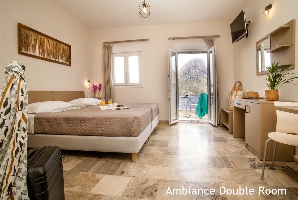 | Penzion je vsazen do svahu nad pobřežím a kaskádovitě se táhne k místní komunikaci v jeho horní části. Hned vedle penzionu je veřejná pláž Masouri, která návštěvníkům nabízí plážový servis a veškeré zázemí. Díky svému posazení hotel nabízí nádherný výhled na moře (také na protější ostrov Telendos) a to jak ze společných prostor, tak i z velké části pokojů. Jedná se o ubytovací zařízení rodinného typu a Vy zde naleznete dostatek soukromí a vstřícný přístup jeho majitelů. |