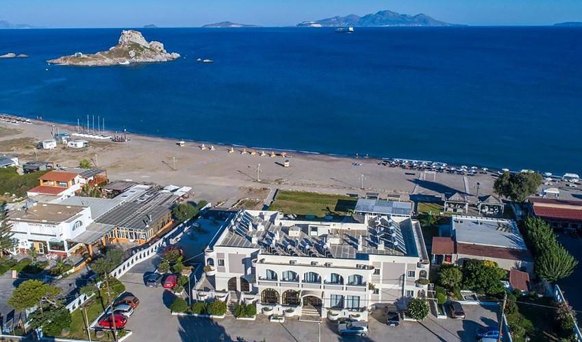 | Hotel s příjemnou rodinnou atmosférou je situován přímo na oblázkovo-písečné pláži Agios Stefanos s pozvolným vstupem do moře v turistické části letoviska Kefalos. Centrum letoviska s obchůdky, bary a tavernami je vzdálené 300 m. Na moři se tyčí malebný ostrůvek Kastri s bazilikou sv. Stefana, která dokresluje kouzelnou scenérii letoviska Kefalos. Za návštěvu stojí antické vykopávky, které se nachází na pobřeží nedaleko pláže. Sportovní klub na pláži nabízí široký výběr vodních sportů. Jedná se o velmi oblíbený hotel u našich stálých klientů, kteří mají rádi tradiční řecká letoviska a krásné koupání přímo u hotelu. Doporučujeme brzkou rezervaci. |