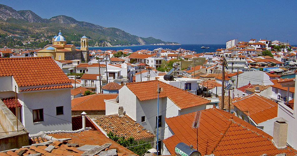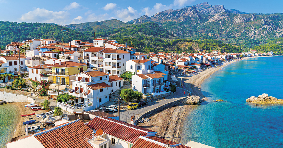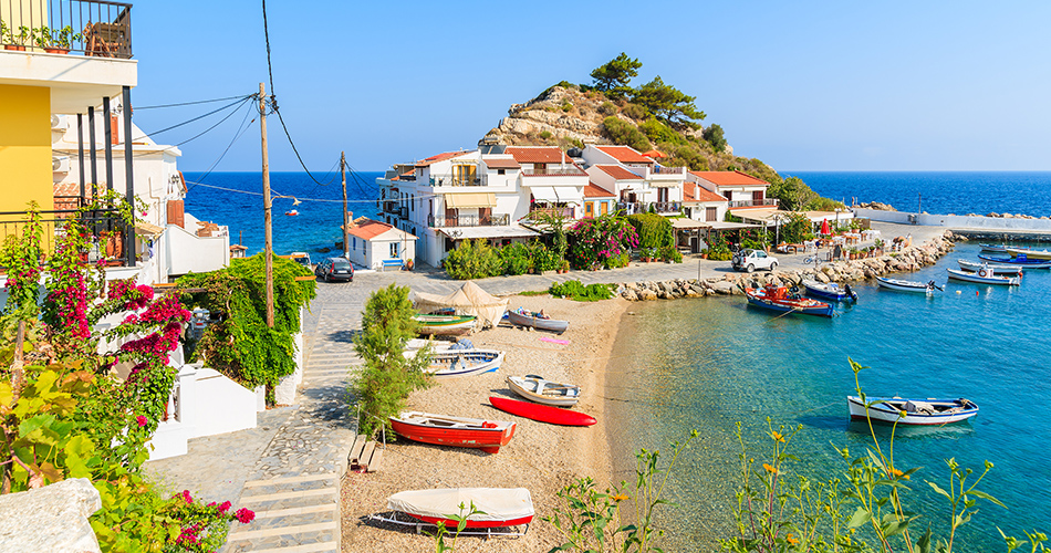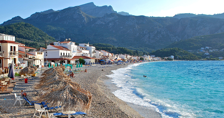 - Cesta na pláž je přes místní komunikaci a vede letoviskem Kokkari