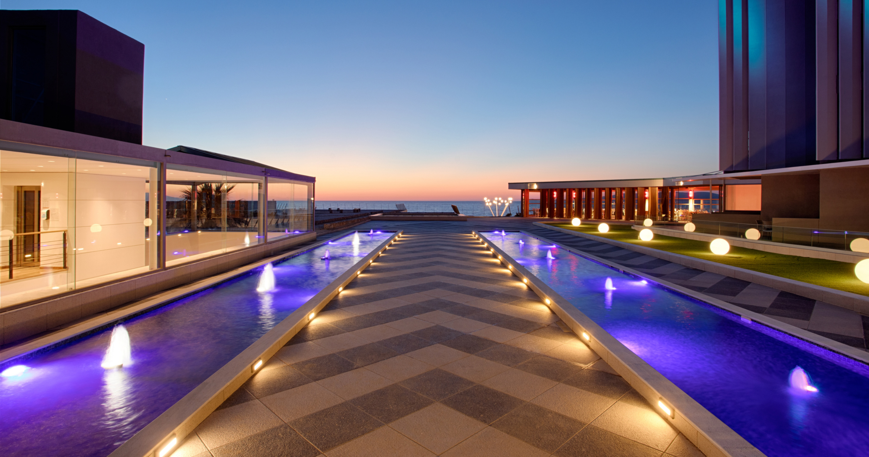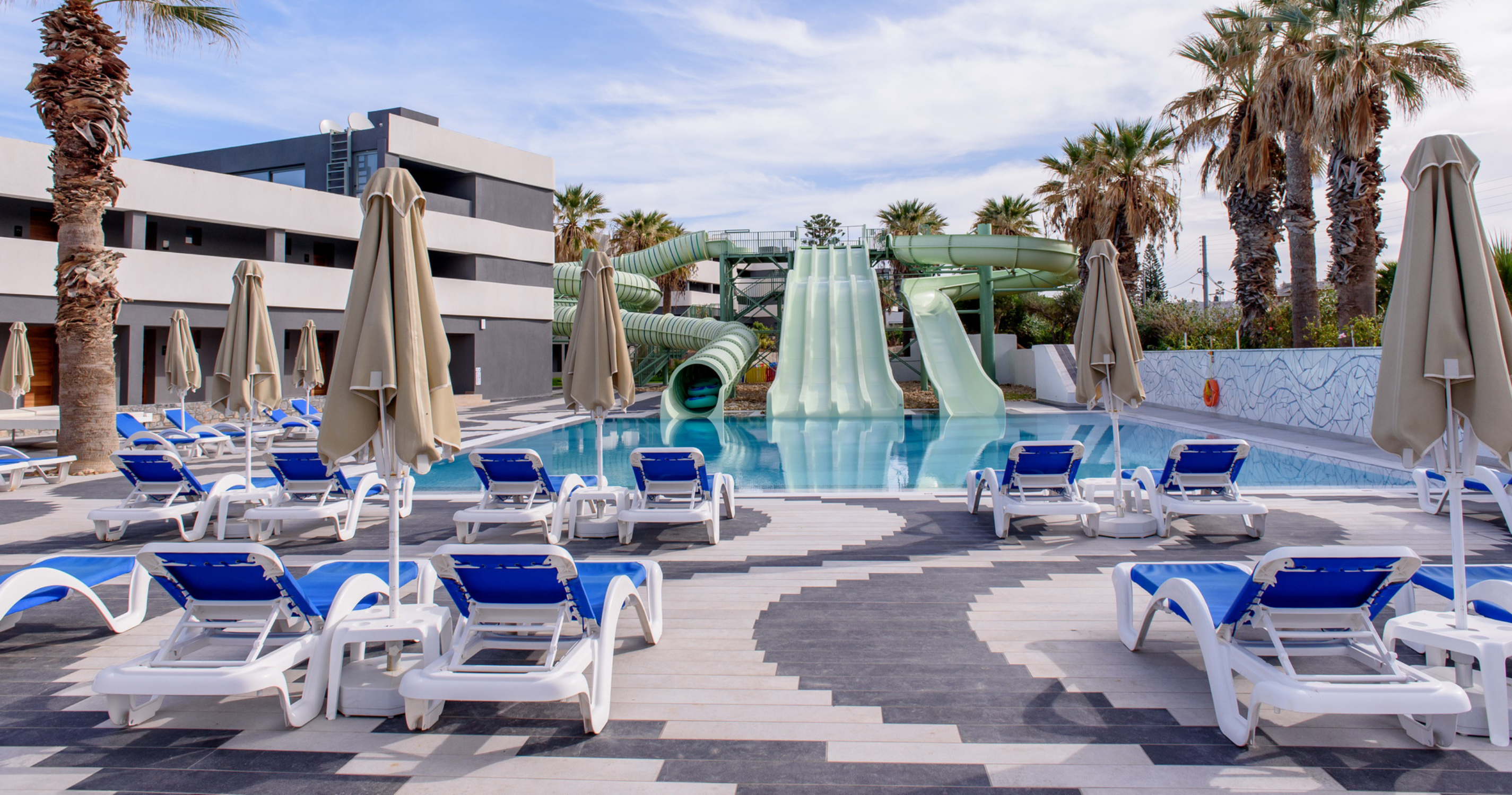 - 3 vekovní bazény pro dospělé a 2 bazény pro děti, 1 z nich se skluzavkami, některé se slanou vodou, vnitřní bazén