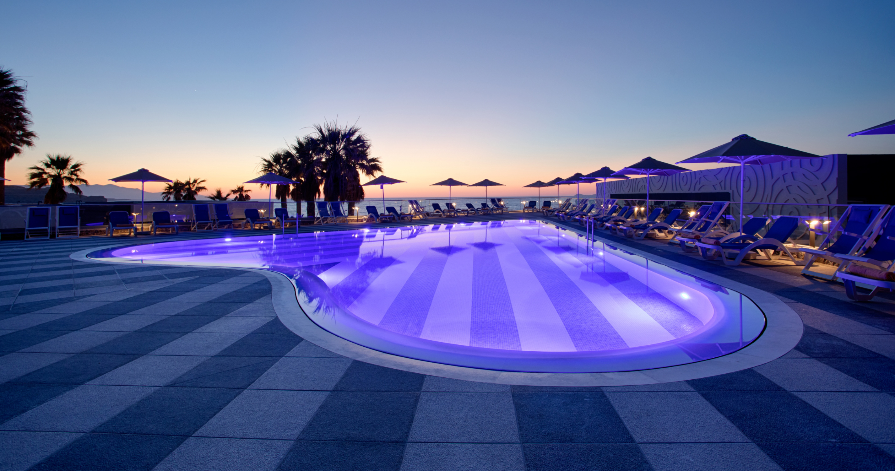 - Pokoje typu penthouse a bungalov u pláže se soukromým bazénem mají možnost bez omezení snídat a večeřet v à la carte restauraci Avra (středomořská kuchyně)