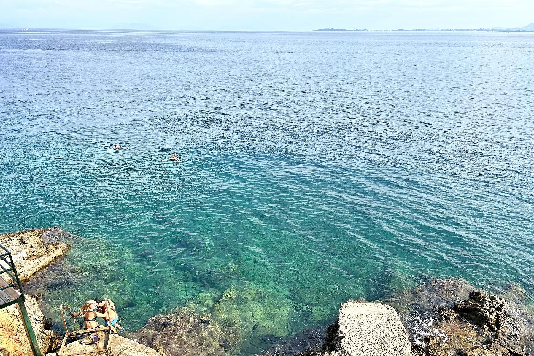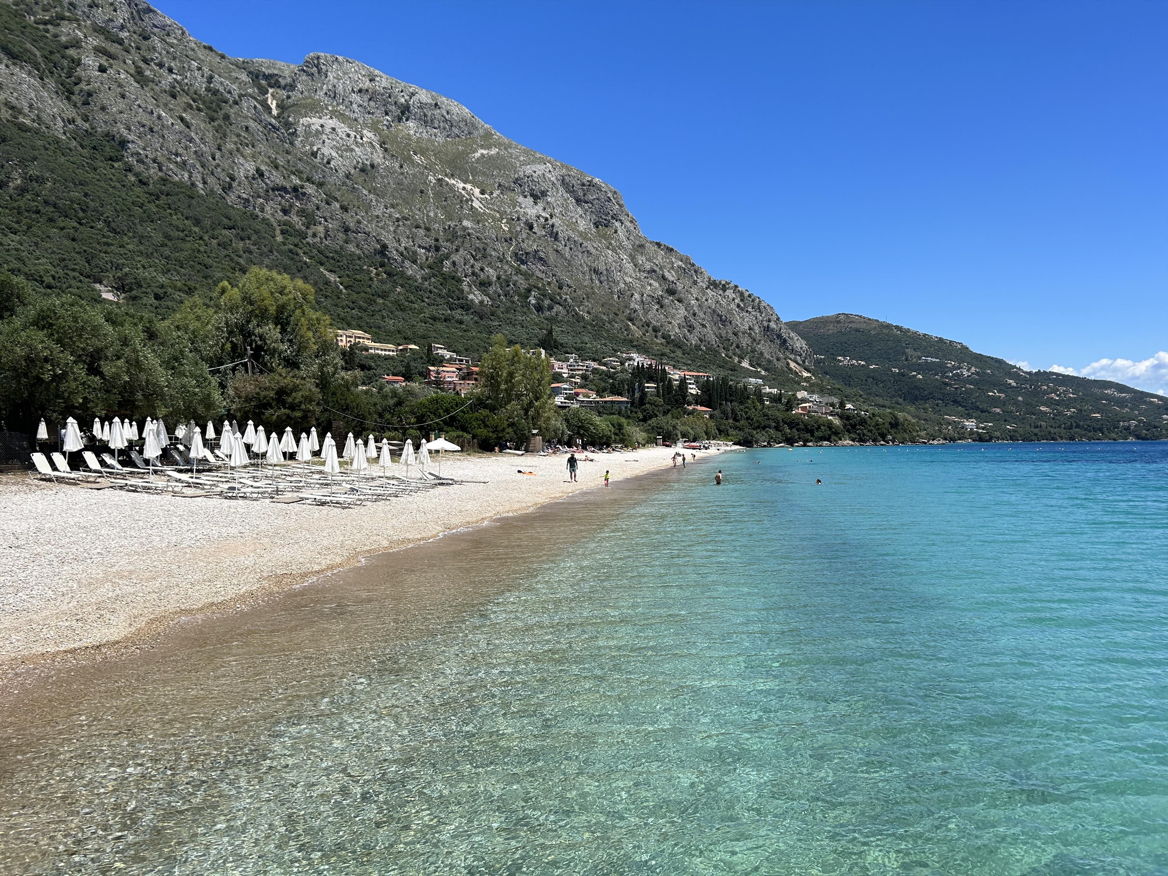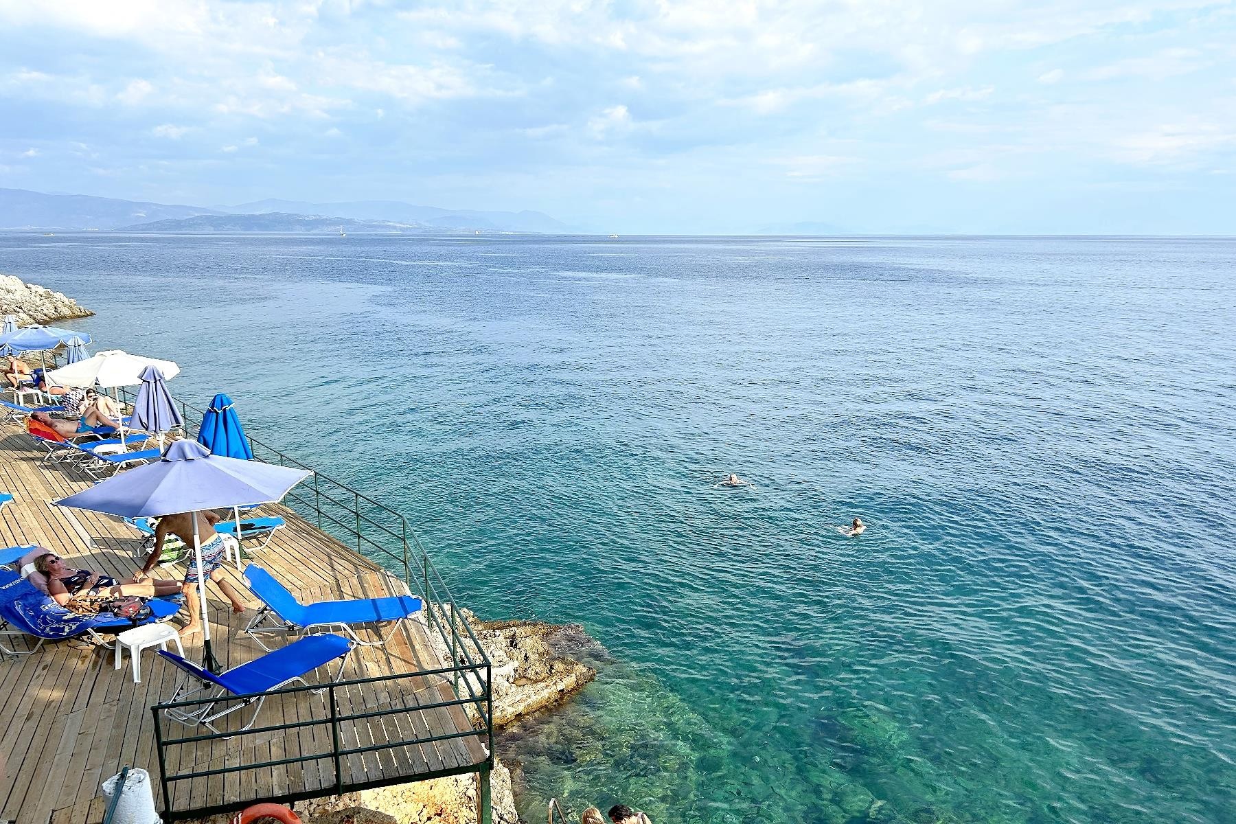 Přímo pod hotelem dřevěné plato, přístup po schodech (800m). Vstup do moře po žebříku, slunečníky a lehátka zdarma. Oblázková pláž Barbati cca 2 km, 2× denně hotelový autobus zdarma. Lehátka a slunečníky za poplatek.