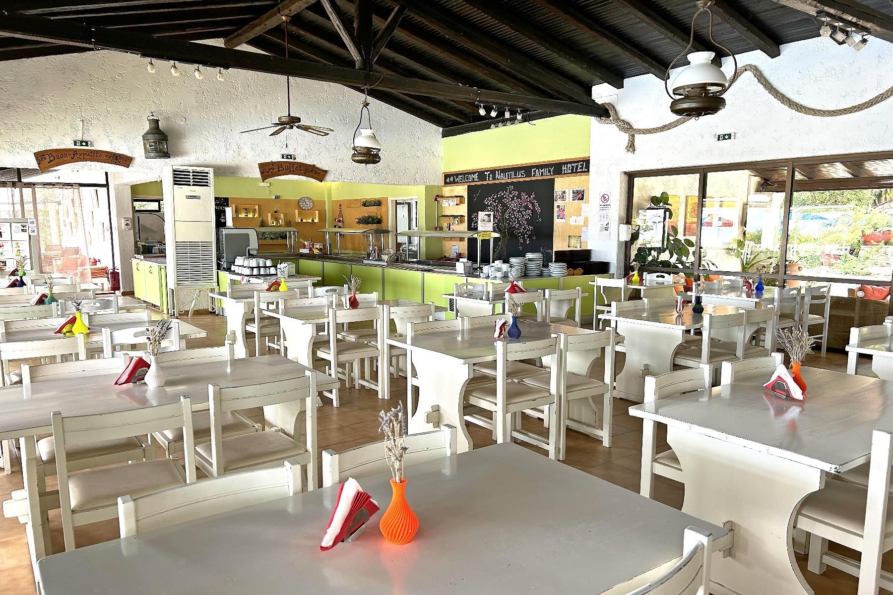 Hlavní budova a 4 vedlejší, 64 pokojů, vstupní hala s recepcí, restaurace, bar s TV koutkem. Venku bazén, terasa s lehátky a slunečníky zdarma.