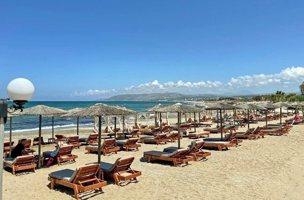Písčitá pláž s pozvolným vstupem do moře se nachází cca 300 m od hotelu. Přístupná přes místní komunikaci. Lehátka a slunečníky na vyhrazené části pláže (u hotelu Blue Mare) zdarma. Bar na pláži není v rámci služeb all inclusive.