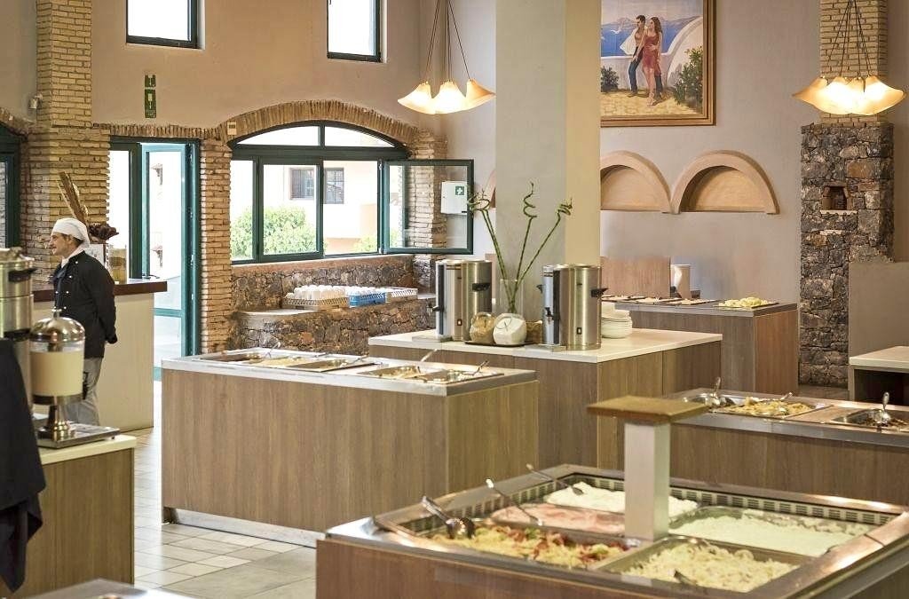All Inclusive zahrnuje snídaně (07:30 - 10:30), obědy (12:30 - 14:30) a večeře (19:00 - 21:30) formou bufetu. Lehké občerstvení a snack během dne. Místní nealkoholické a alkoholické nápoje v časech a msístech určených hotelem (10:30 - 22:30). Importovaný alkohol za poplatek. Restaurace, stejně tak i hlavní bar se nachází přímo naproti hlavní budově.
