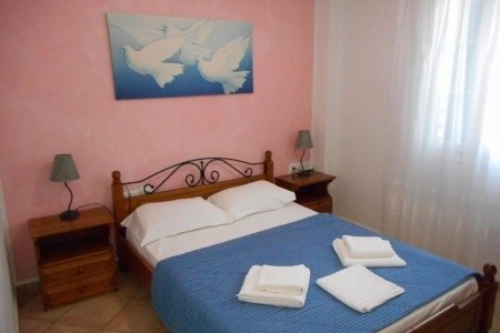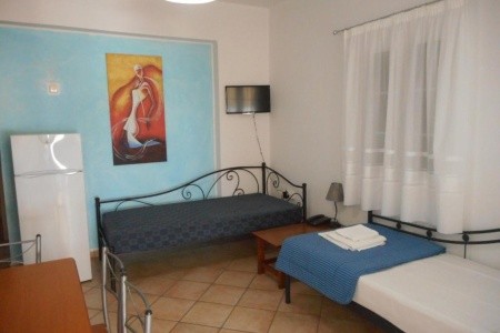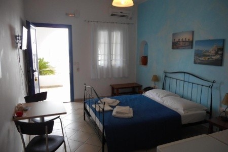 | Spíše menší studia a apartmán jsou vybaveny sprchou, WC, kuchyňským koutem (včetně vařiče, základního nádobí a ledničky), klimatizací, TV, sejfem, telefonem a Wi-Fi. Všechny pokoje jsou v přízemí a ze zastíněných teras je výhled na moře. Studia mají vždy 2 lůžka a apartmán má 1 ložnici a 2 lůžka v obytné kuchyni. Dětská postýlka je na vyžádání (zdarma). |