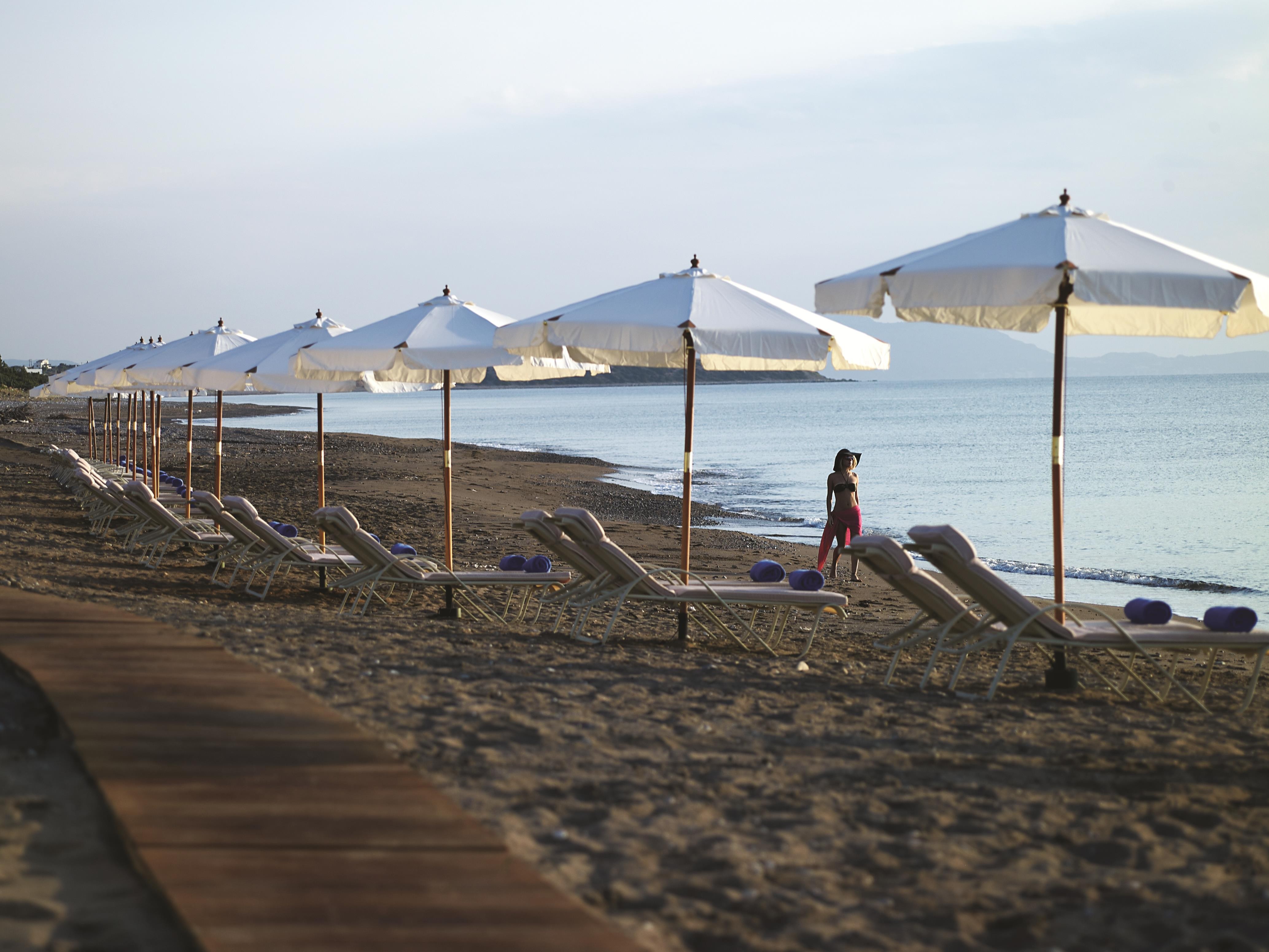 Přímo u krásné písečnooblázkové pláže. Na pláži k dispozici sprchy/WC. Lehátka a slunečníky zdarma včetně osušek.