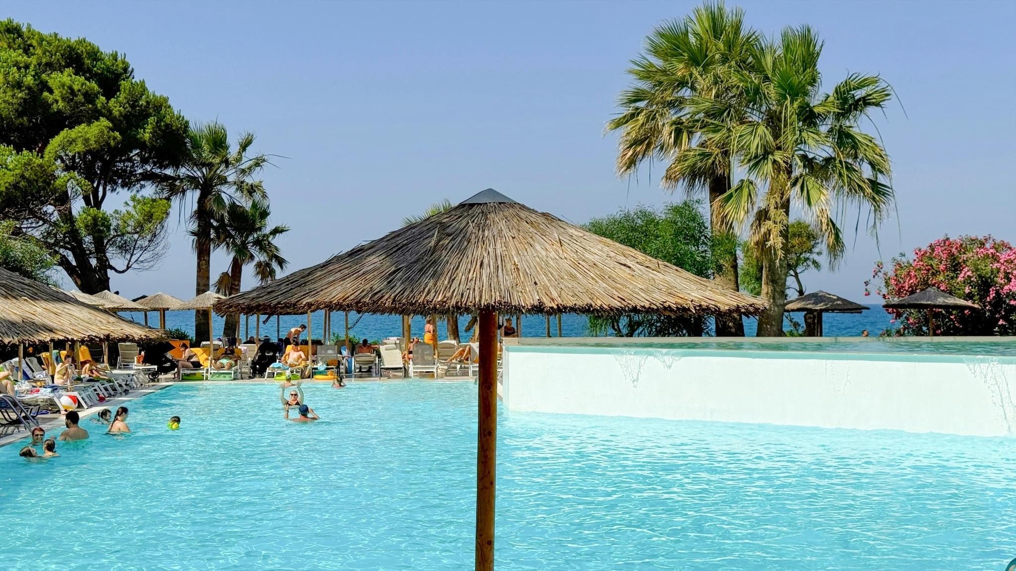 Balíček All inclusive zahrnuje lihoviny místní produkce (Ouzo, Gin, Vodka, Rum), točené pivo, domácí víno, nealkoholické nápoje, voda. Všechny koktejly jsou vyráběny z místních nápojů.