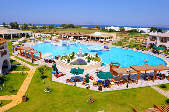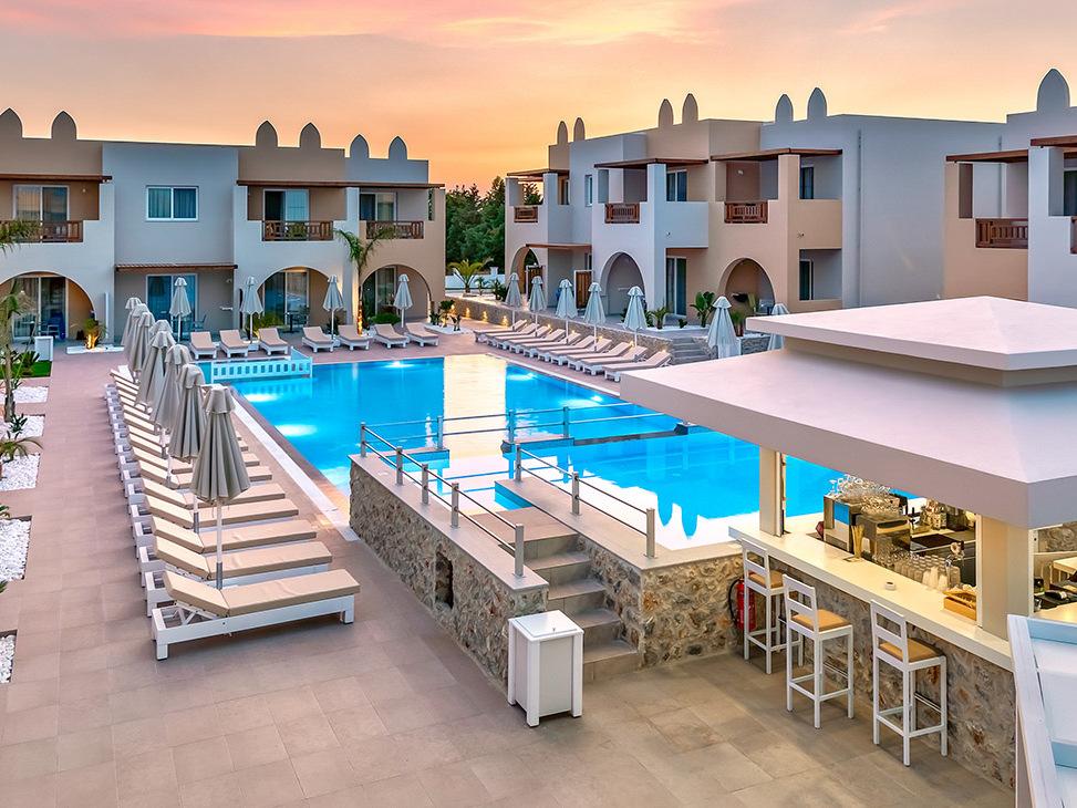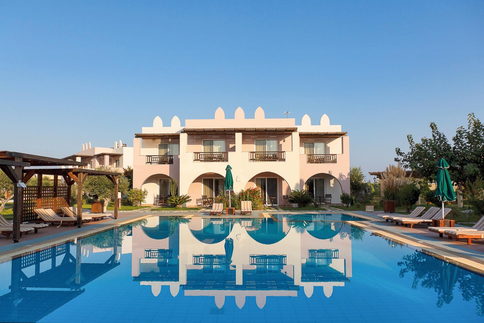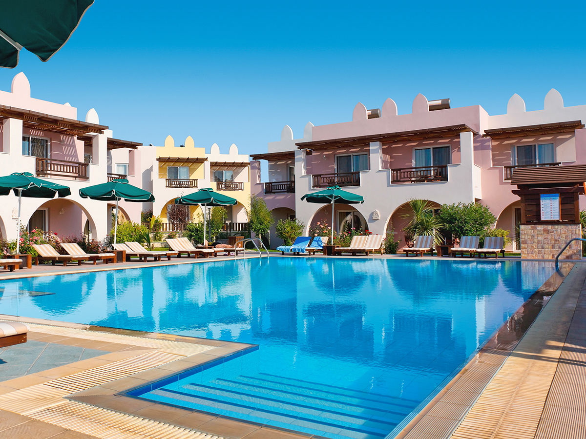 Hotelový komplex ve stylu vesničky cca 5 km od letoviska Mastichari (obchody, restaurace, bary) a cca 18 km od hlavního města Kos.